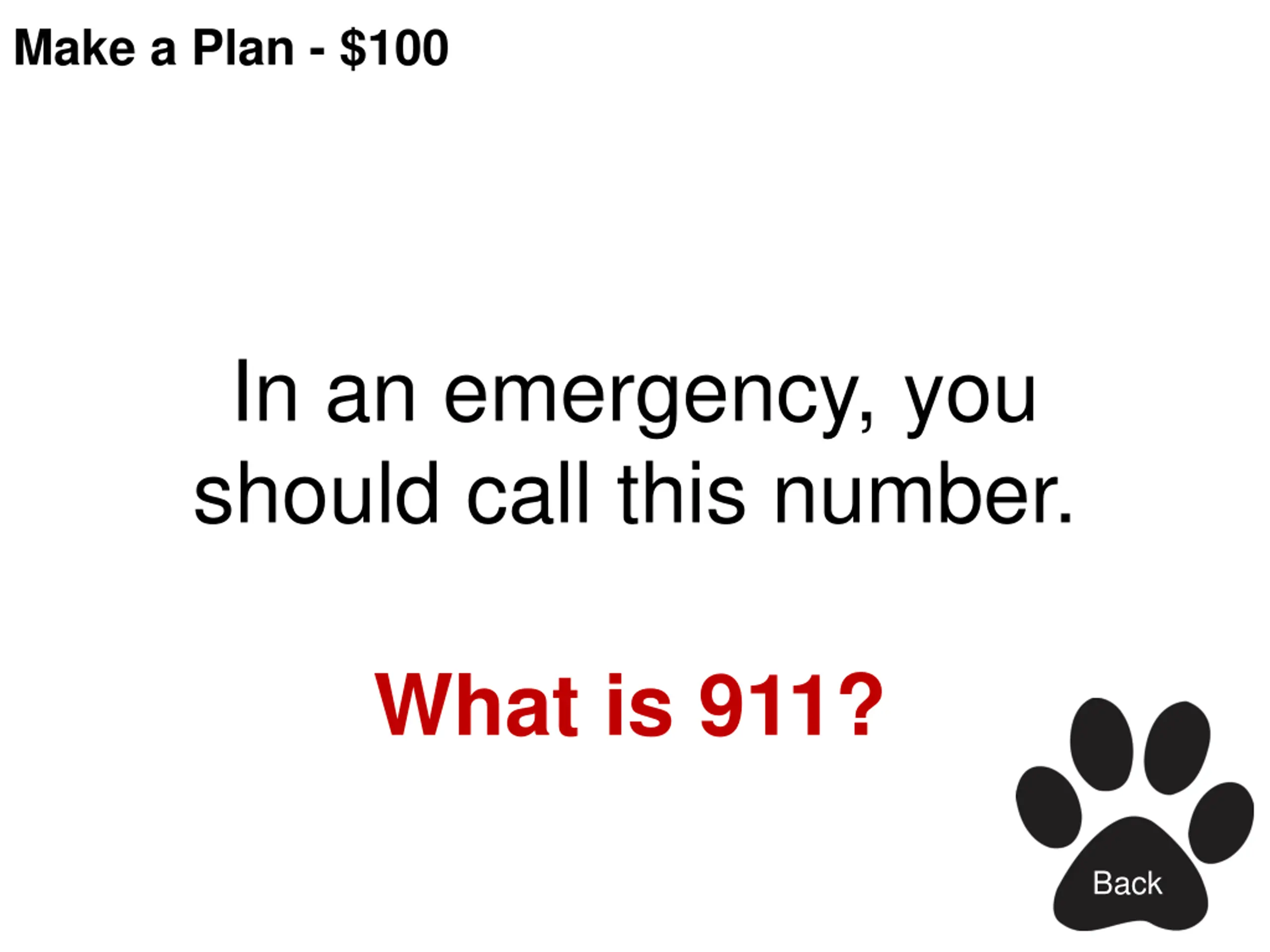 Make a Plan - $100 In an emergency, you should call this number. What is 911? Back Back