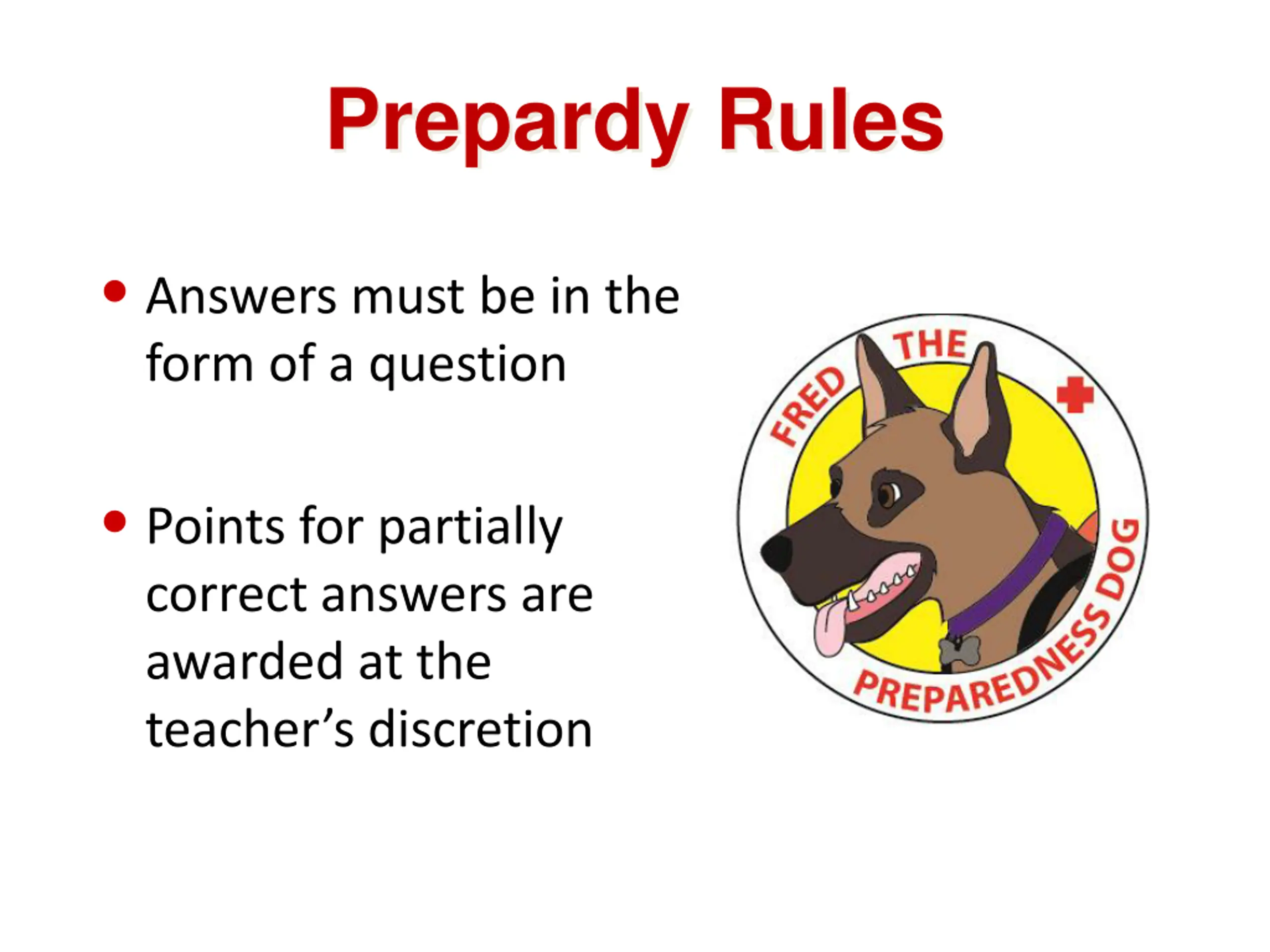 Prepardy Rules Answers must be in the form of a question Points for partially correct answers are awarded at the teacher s discretion