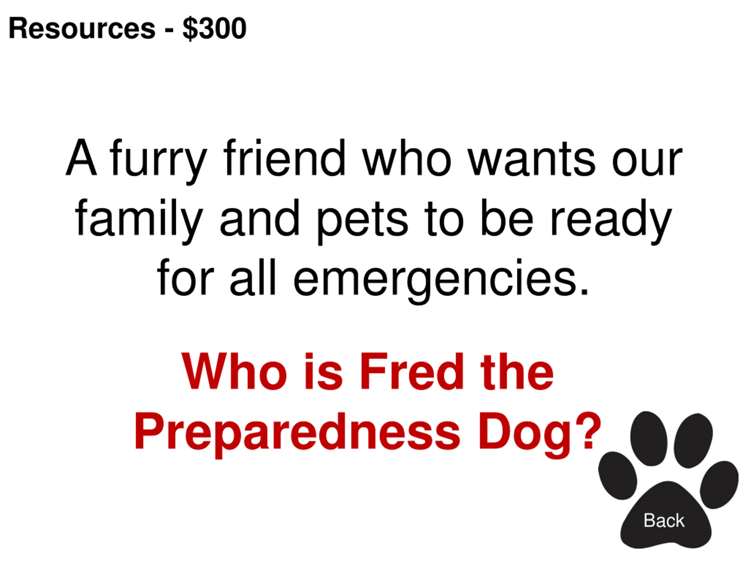Resources - $300 A furry friend who wants our family and pets to be ready for all emergencies. Who is Fred the Preparedness Dog? Back Back