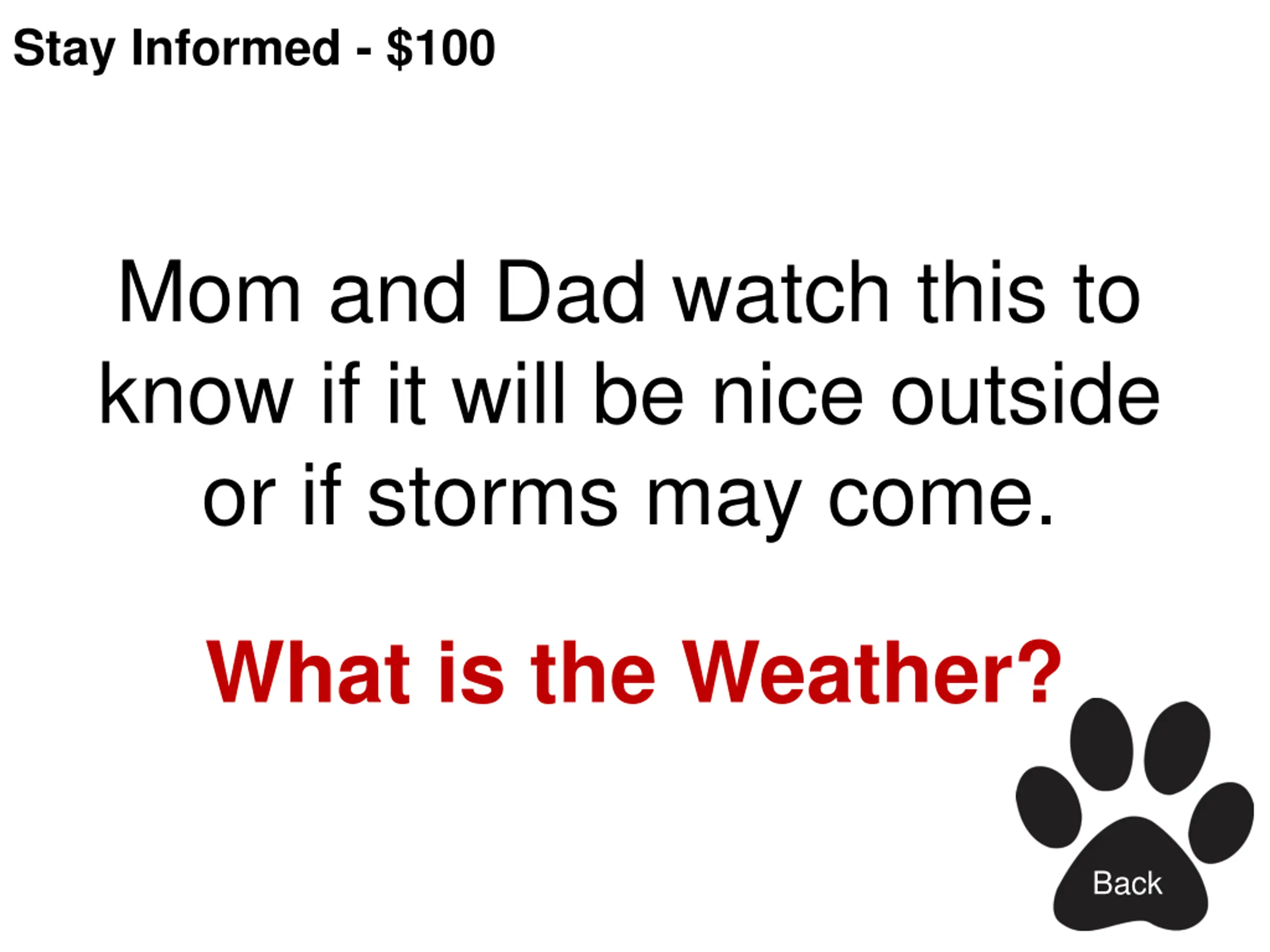 Stay Informed - $100 Mom and Dad watch this to know if it will be nice outside or if storms may come. What is the Weather? Back Back