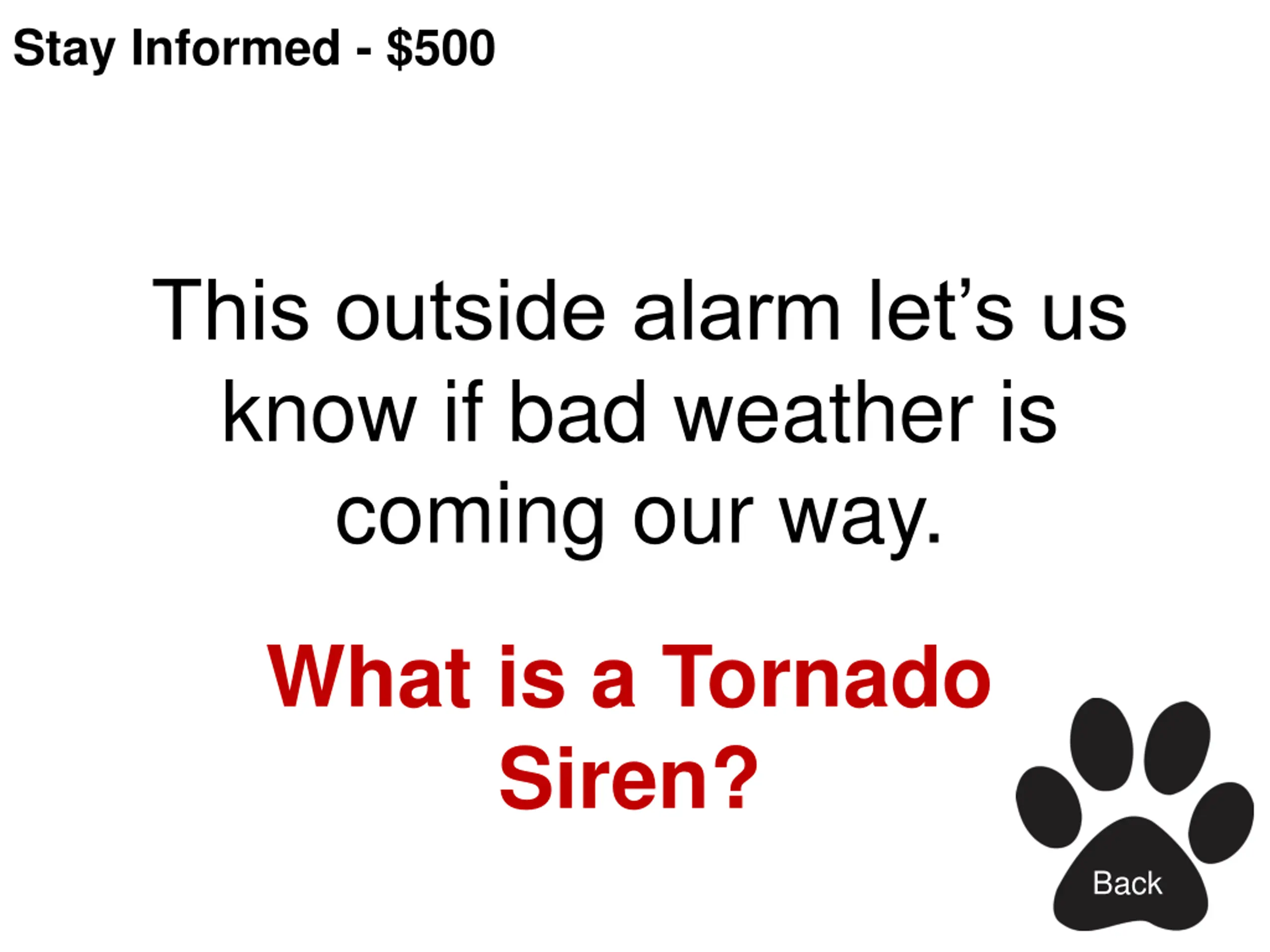 Stay Informed - $500 This outside alarm let s us know if bad weather is coming our way. What is a Tornado Siren? Back Back