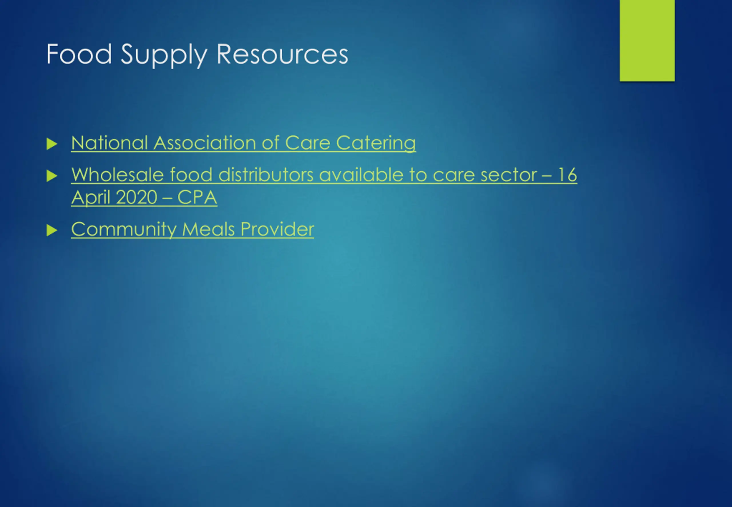 Food Supply Resources National Association of Care Catering Wholesale food distributors available to care sector 16 April 2020 CPA Community Meals Provider