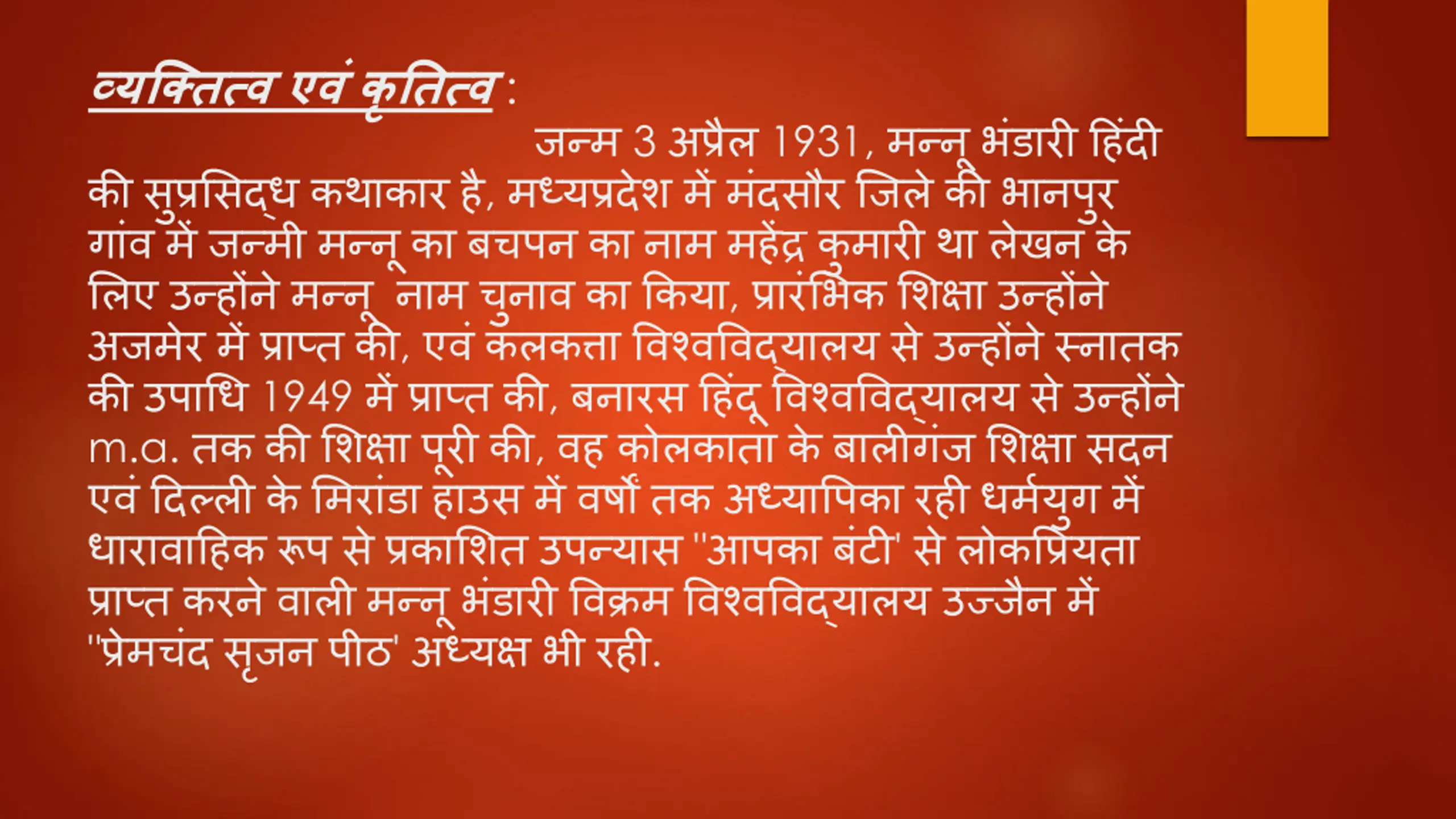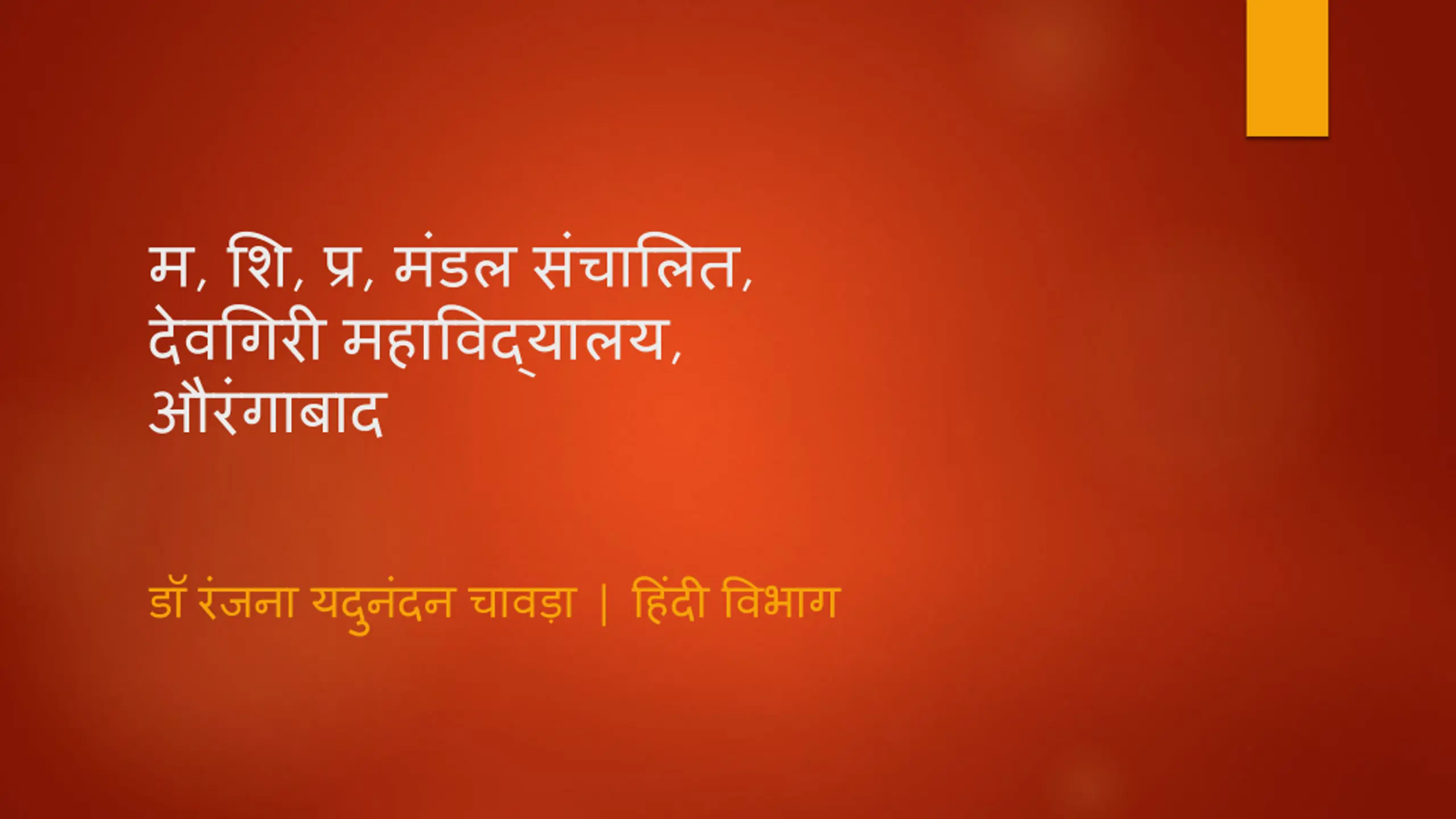 Presentation by Dr. Mrs. Chawada Ranjana Yadunandan - Hindi Department, Deogiri College