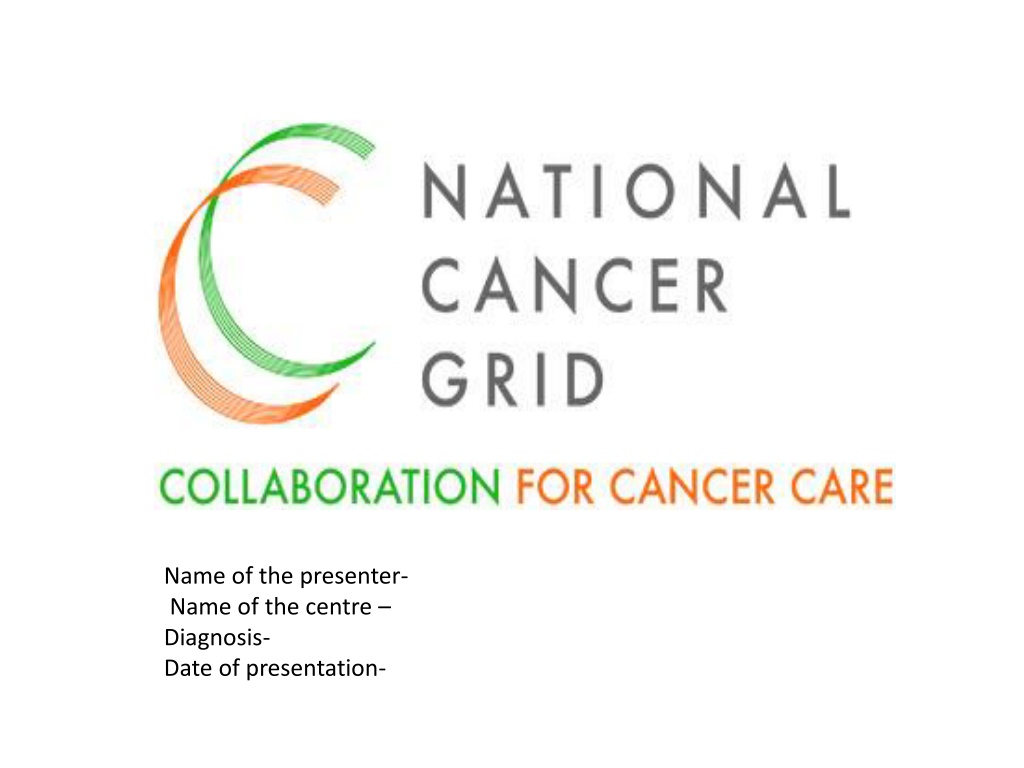 Name of the presenter- Name of the centre Diagnosis- Date of presentation-