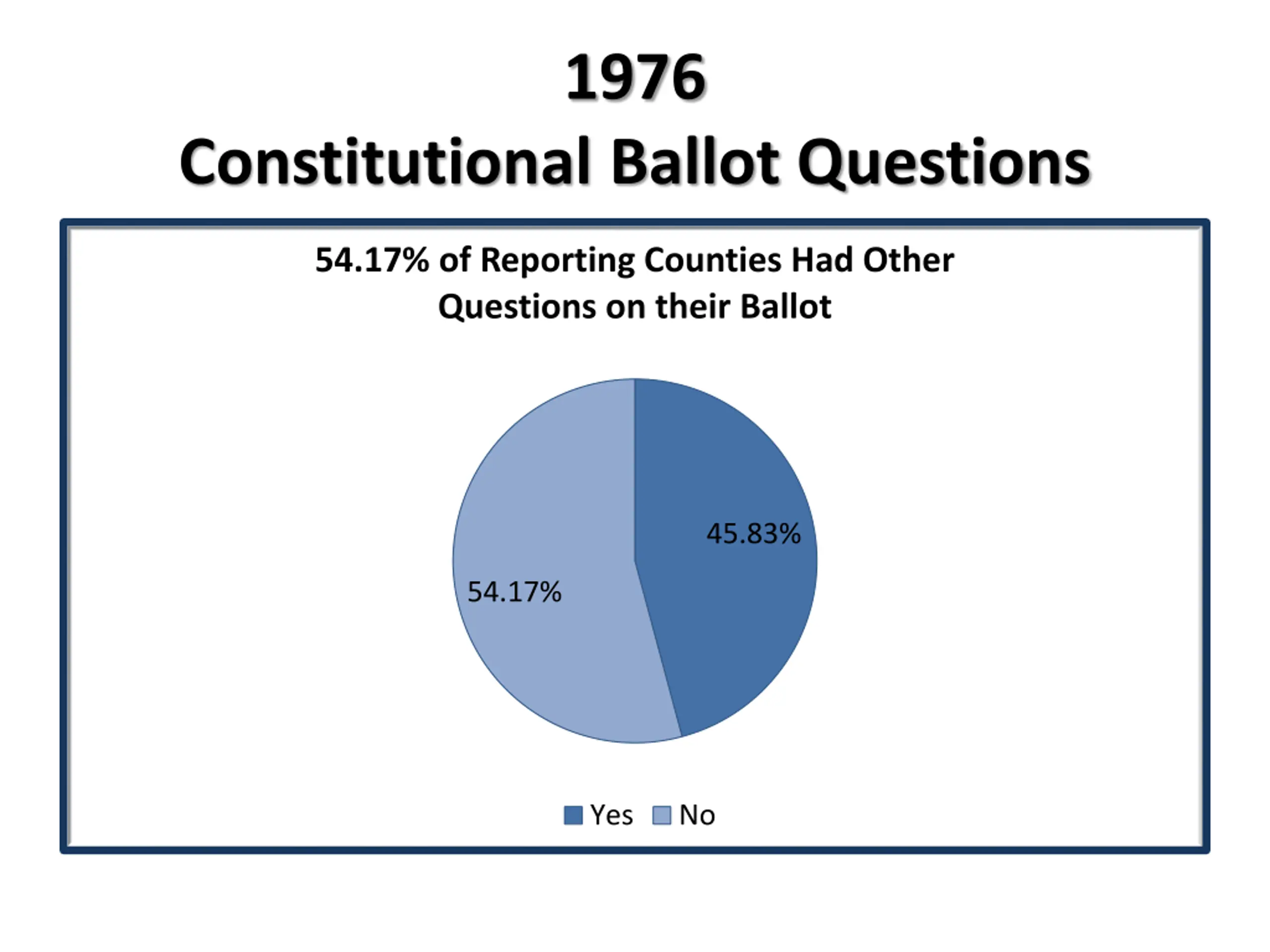 1976 Constitutional Ballot Questions 54.17% of Reporting Counties Had Other Questions on their Ballot 45.83% 54.17% Yes No