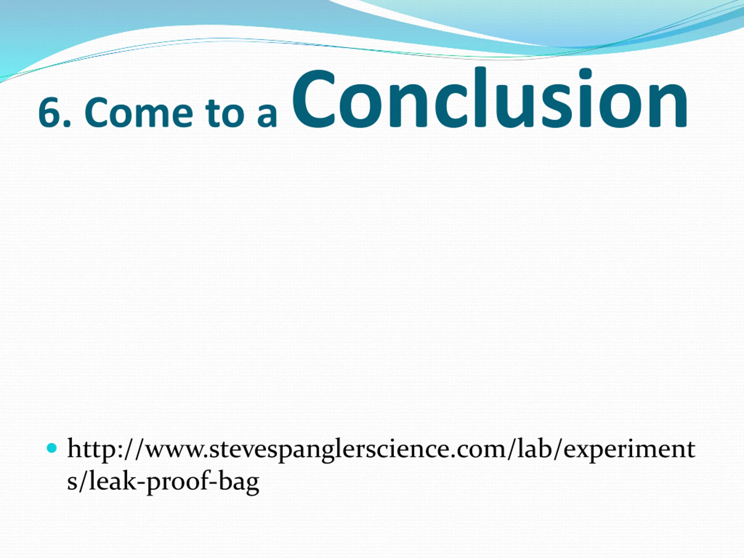 6. Come to a Conclusion http://www.stevespanglerscience.com/lab/experiment s/leak-proof-bag