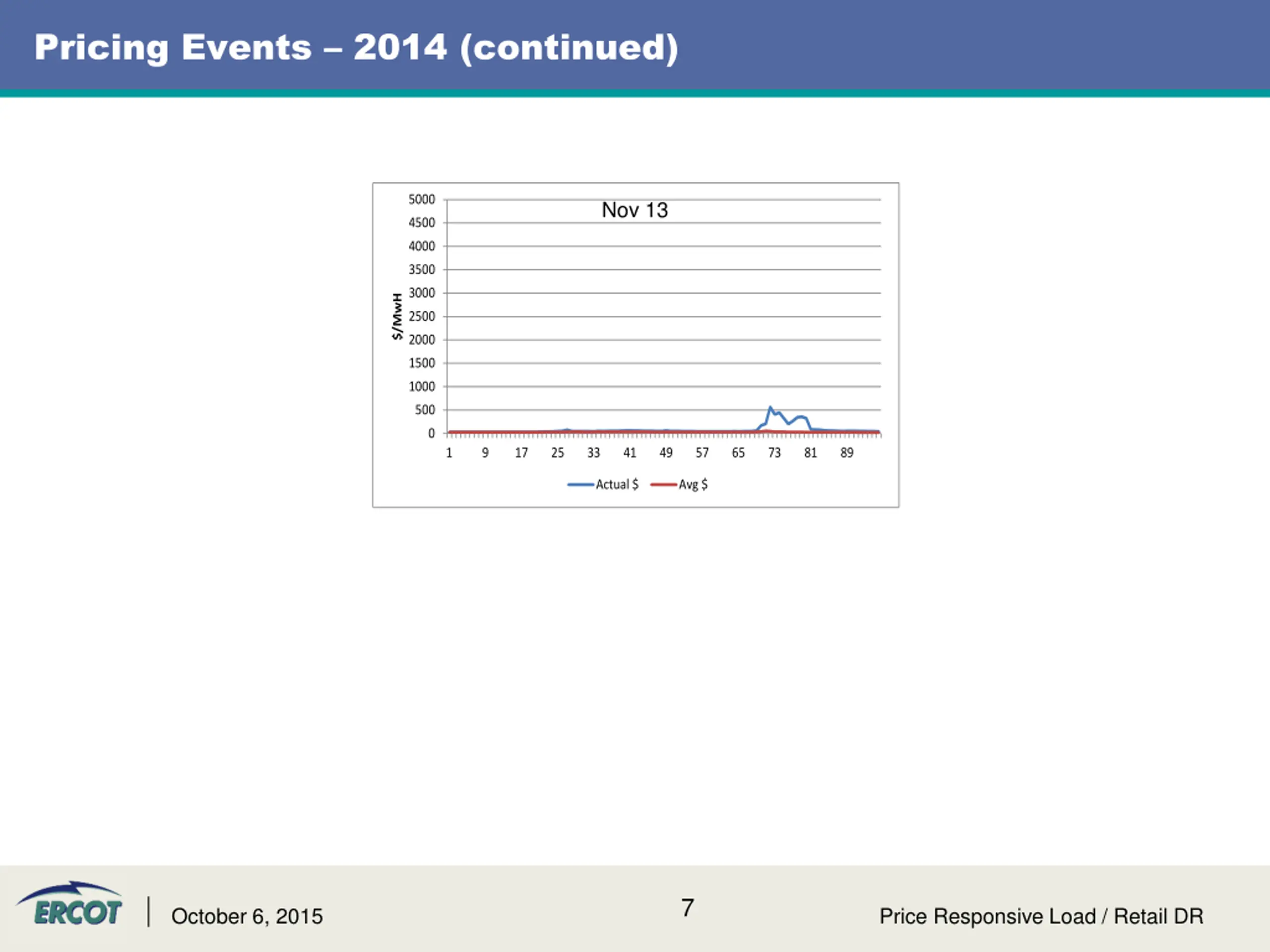 Pricing Events 2014 (continued) 5000 Nov 13 4500 4000 3500 3000 $/MwH 2500 2000 1500 1000 500 0 1 9 17 25 33 41 49 57 65 73 81 89 Actual $ Avg $ 7 October 6, 2015 Price Responsive Load / Retail DR
