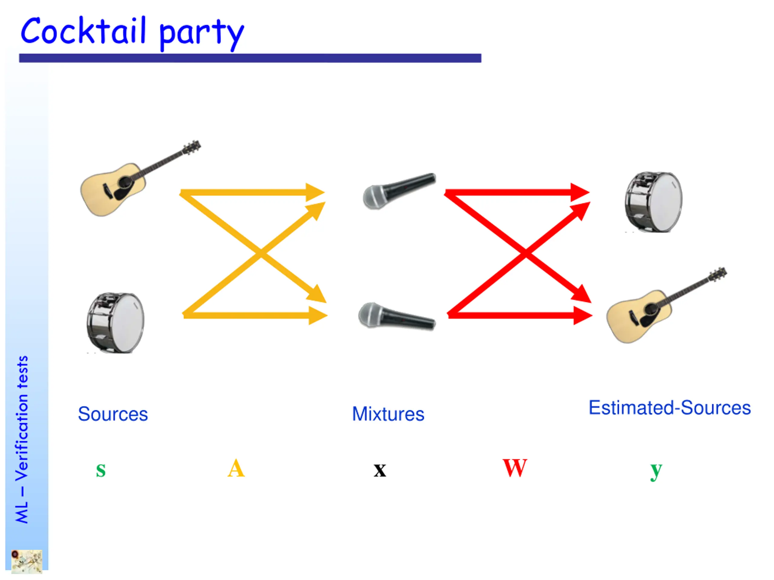 Cocktail party ML Verification tests Estimated-Sources Sources Mixtures s A x W y