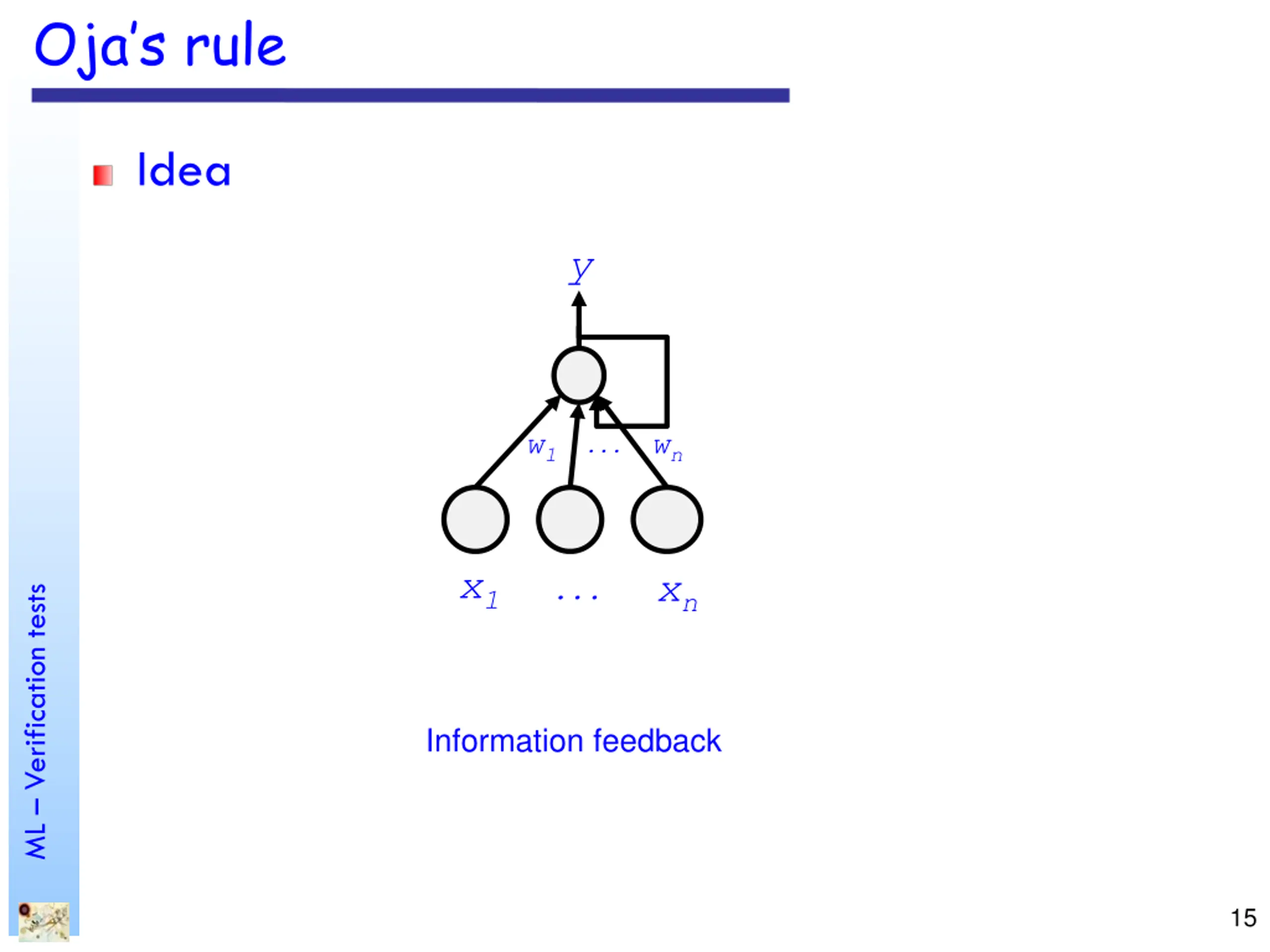 Ojas rule Idea y w1 ... wn x1 xn ... ML Verification tests Information feedback 15