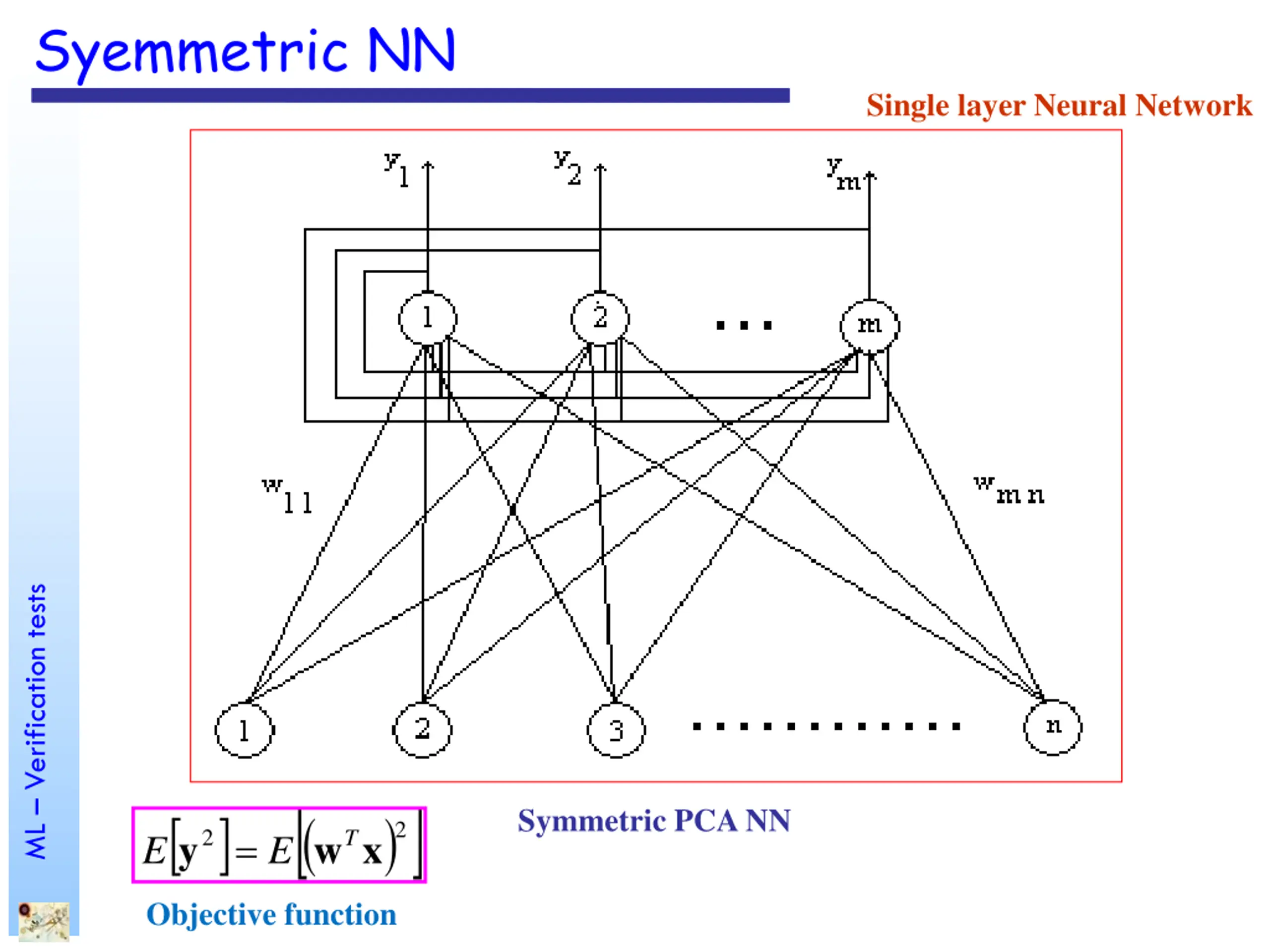 Syemmetric NN Single layer Neural Network ML Verification tests y ( ) Symmetric PCA NN 2 = 2 T w x E E Objective function