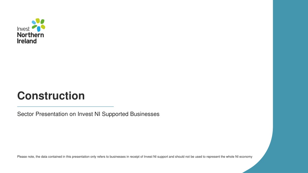 Construction Sector Presentation on Invest NI Supported Businesses Please note, the data contained in this presentation only refers to businesses in receipt of Invest NI support and should not be used to represent the whole NI economy