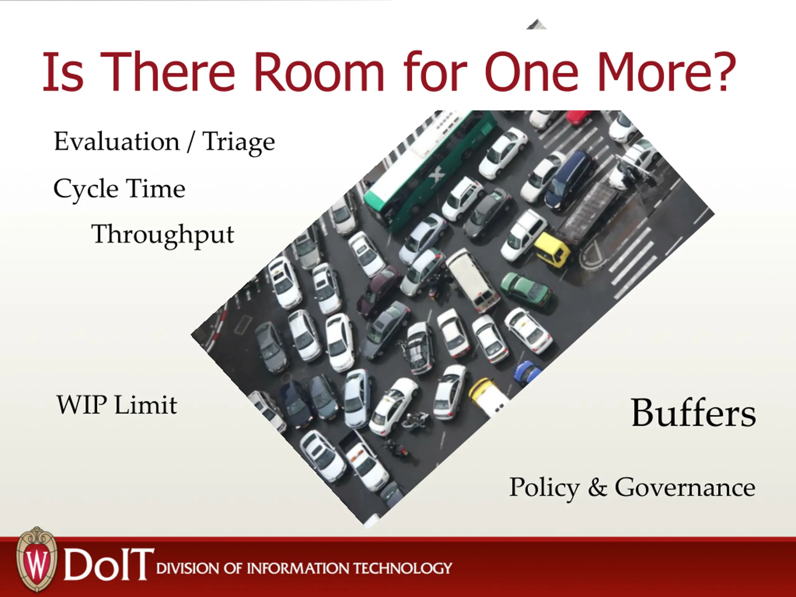 Is There Room for One More? Evaluation / Triage Cycle Time Throughput WIP Limit Buffers Policy & Governance