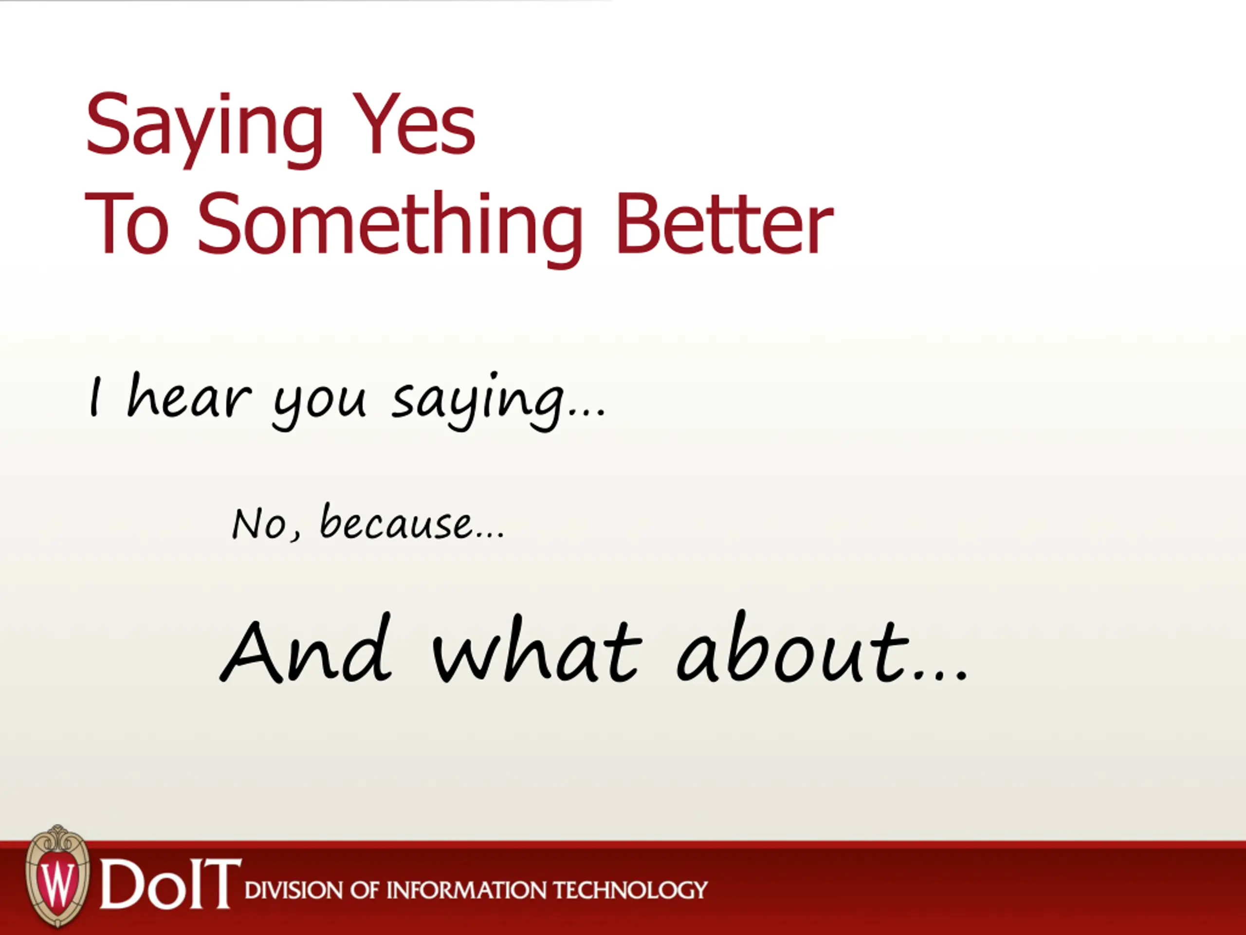 Saying Yes To Something Better I hear you saying No, because And what about