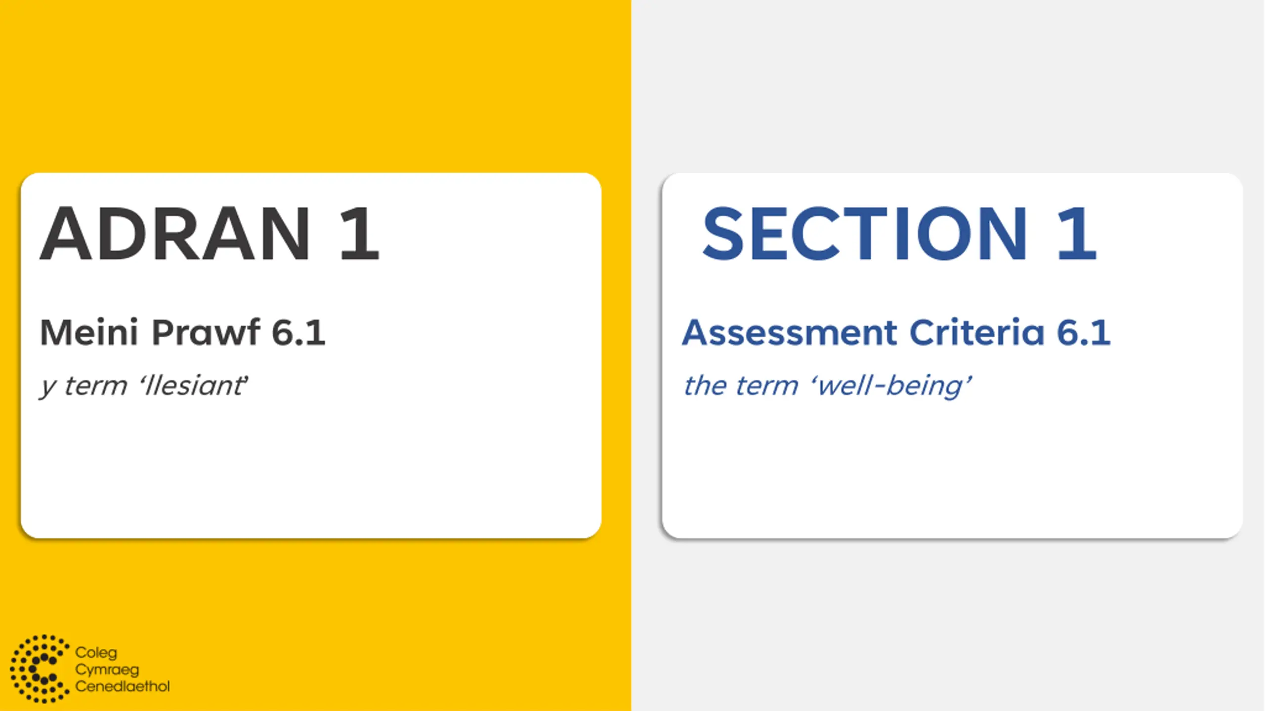 ADRAN 1 SECTION 1 Meini Prawf 6.1 y term llesiant Assessment Criteria 6.1 the term well-being v v