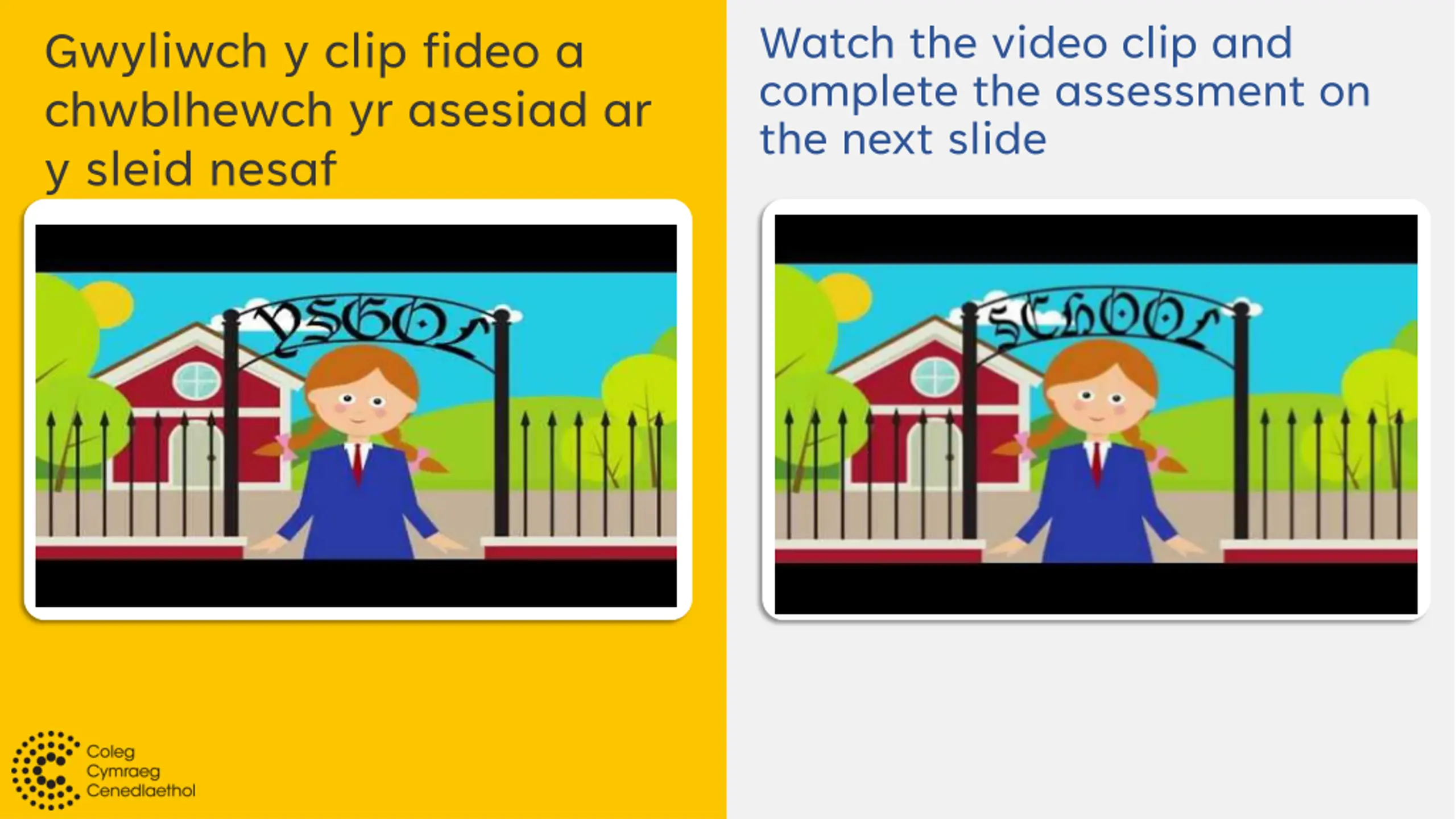 Watch the video clip and complete the assessment on the next slide Gwyliwch y clip fideo a chwblhewch yr asesiad ar y sleid nesaf v v