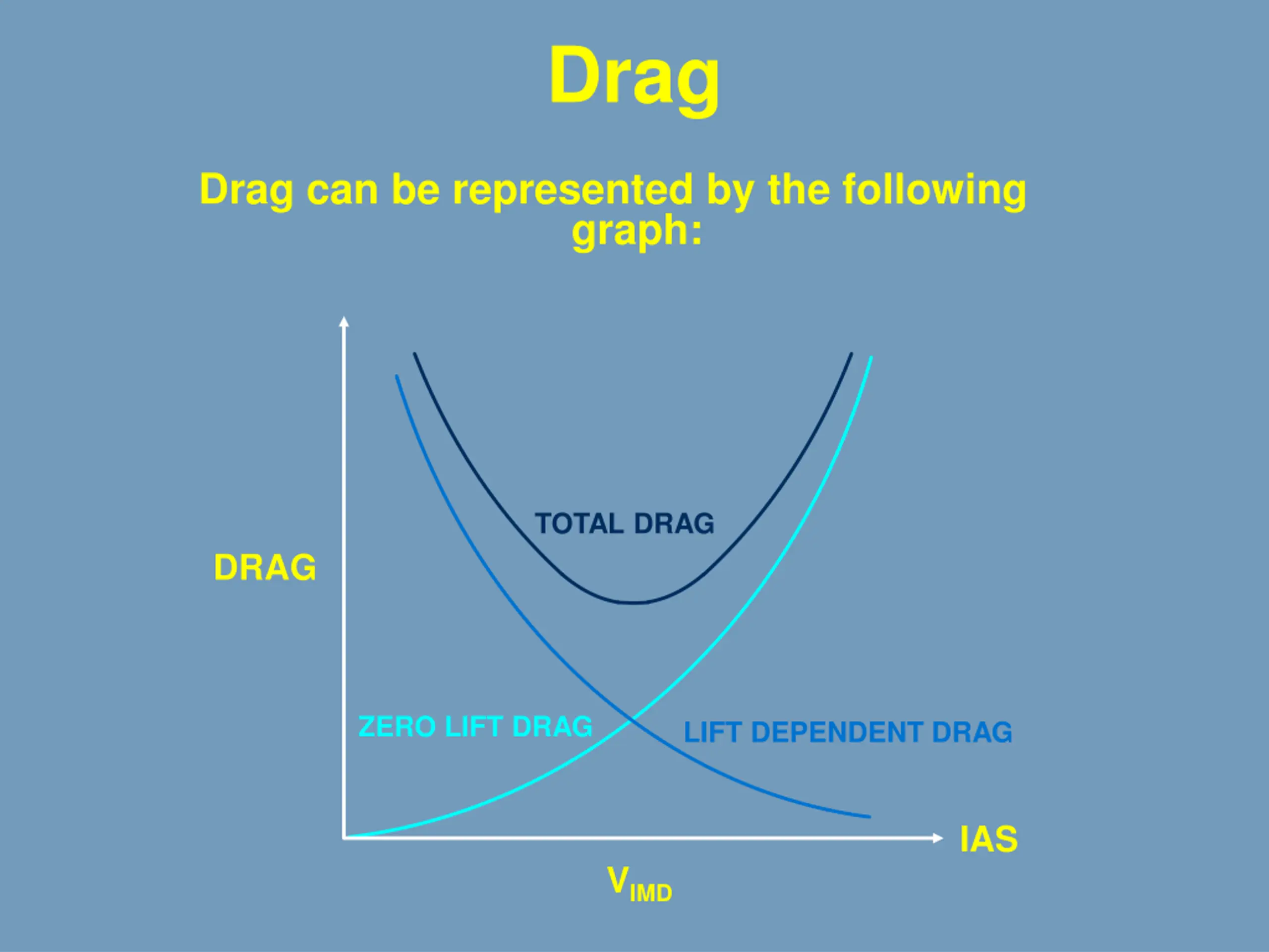 Drag Drag can be represented by the following graph: TOTAL DRAG DRAG ZERO LIFT DRAG LIFT DEPENDENT DRAG IAS VIMD