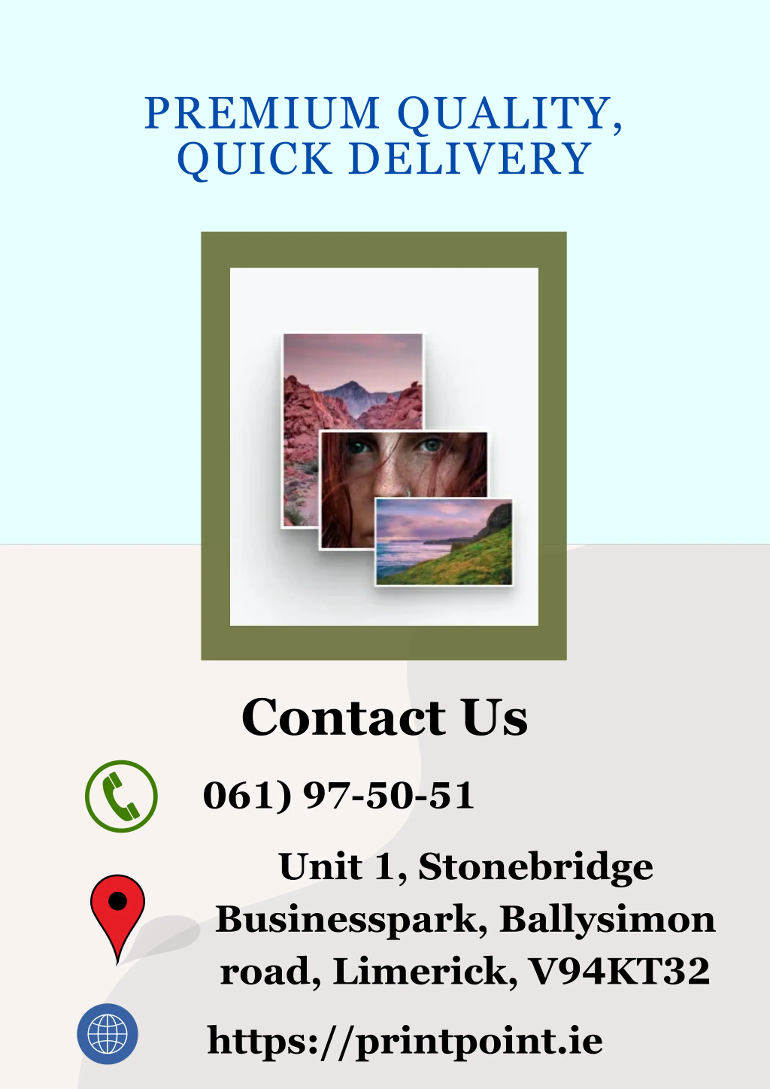PREMIUM QUALITY, QUICK DELIVERY Contact Us 061) 97-50-51 Unit 1, Stonebridge Businesspark, Ballysimon road, Limerick, V94KT32 https://printpoint.ie