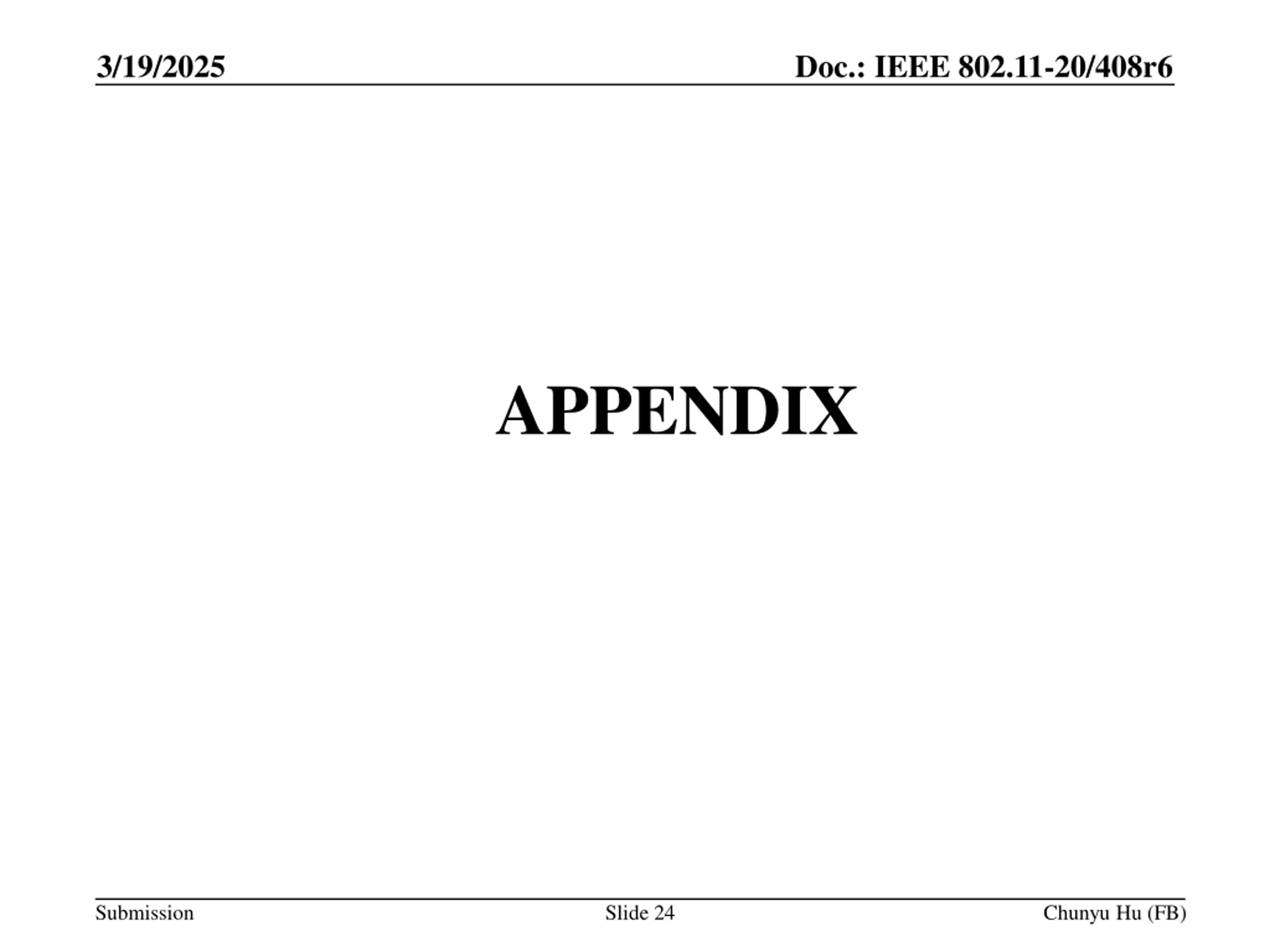 3/19/2025 Doc.: IEEE 802.11-20/408r6 APPENDIX Submission Slide 24 Chunyu Hu (FB)
