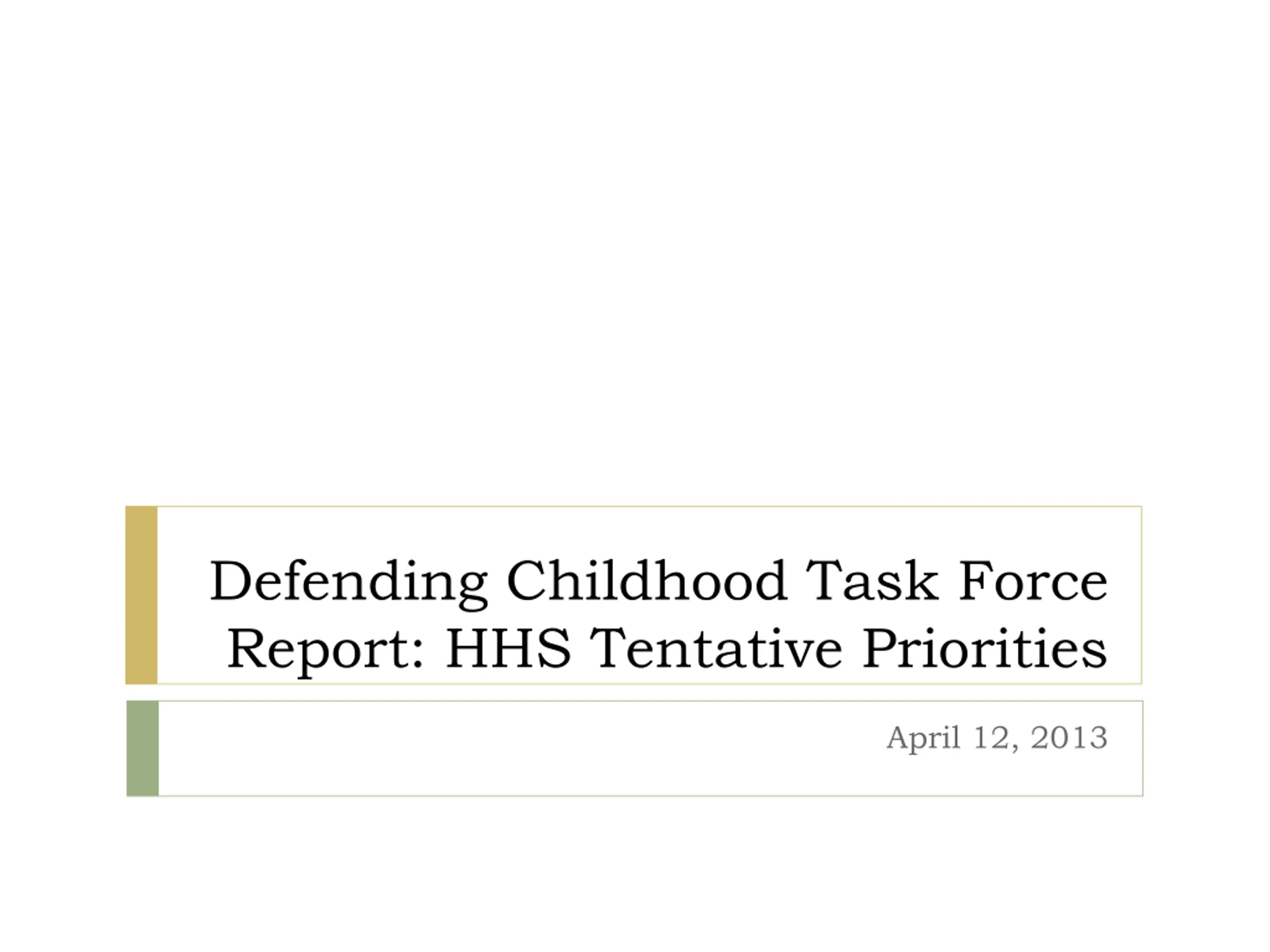Defending Childhood Task Force Report: HHS Tentative Priorities April 12, 2013