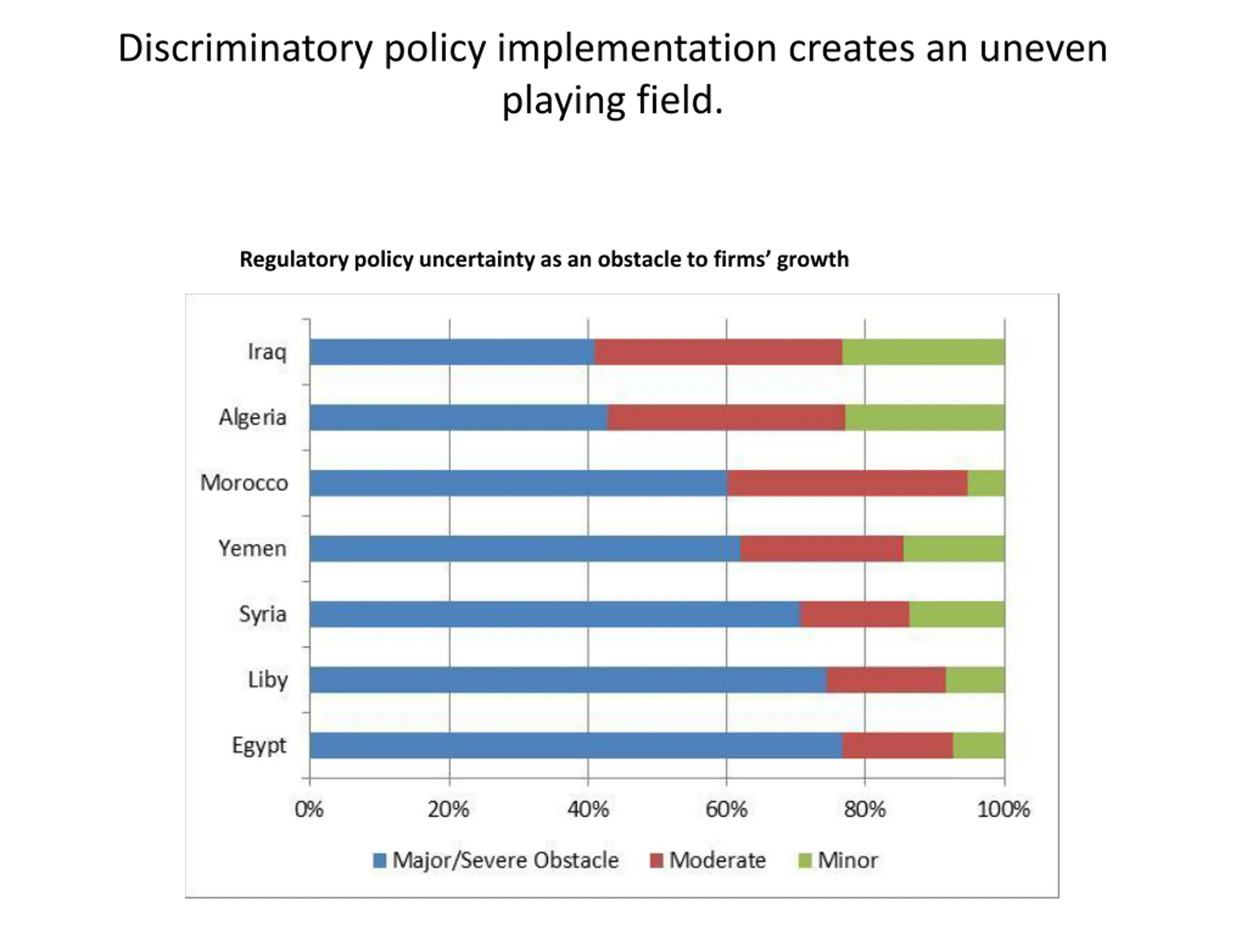 Discriminatory policy implementation creates an uneven playing field. Regulatory policy uncertainty as an obstacle to firms growth