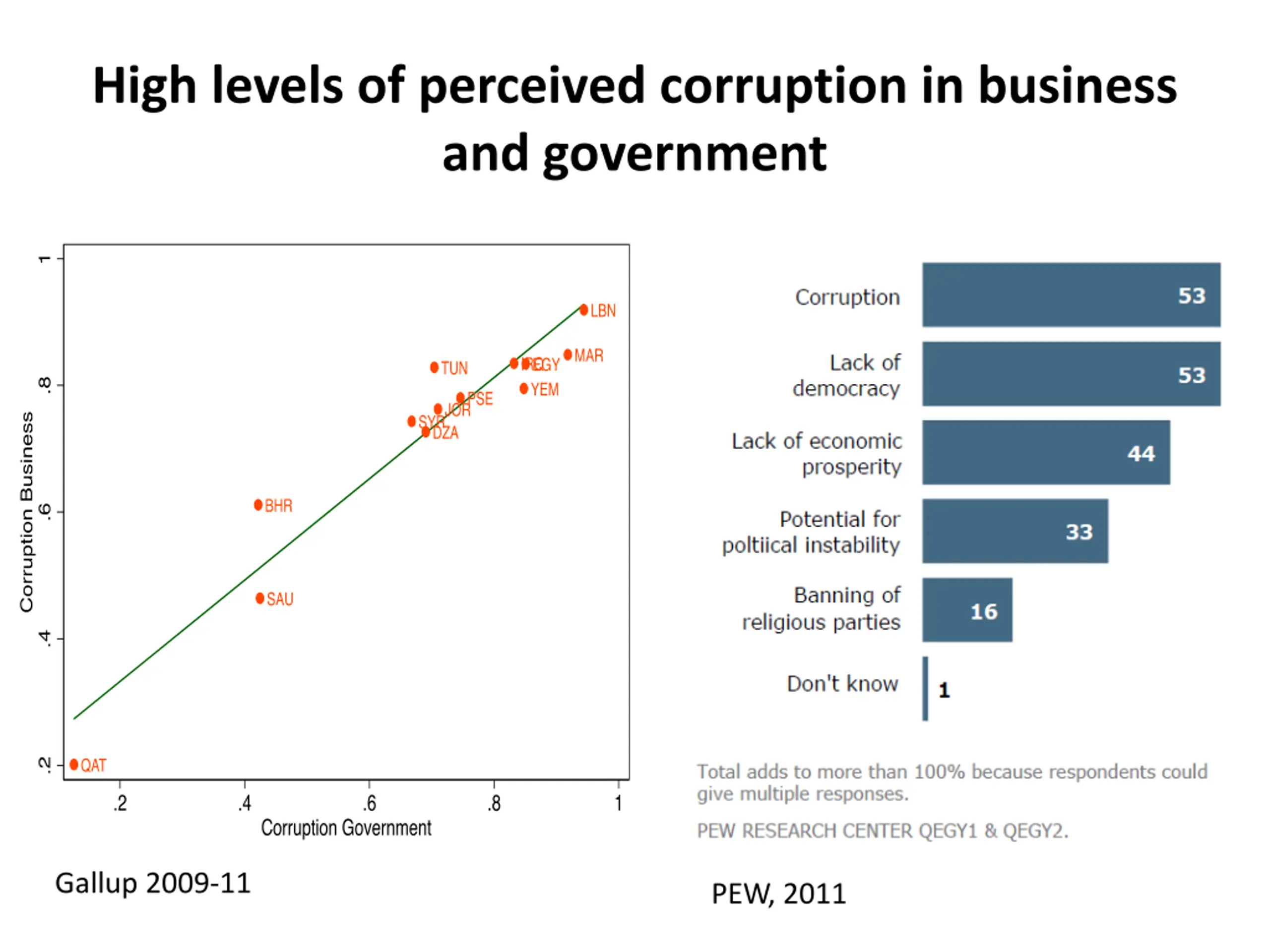 High levels of perceived corruption in business and government Gallup 2009-11 PEW, 2011