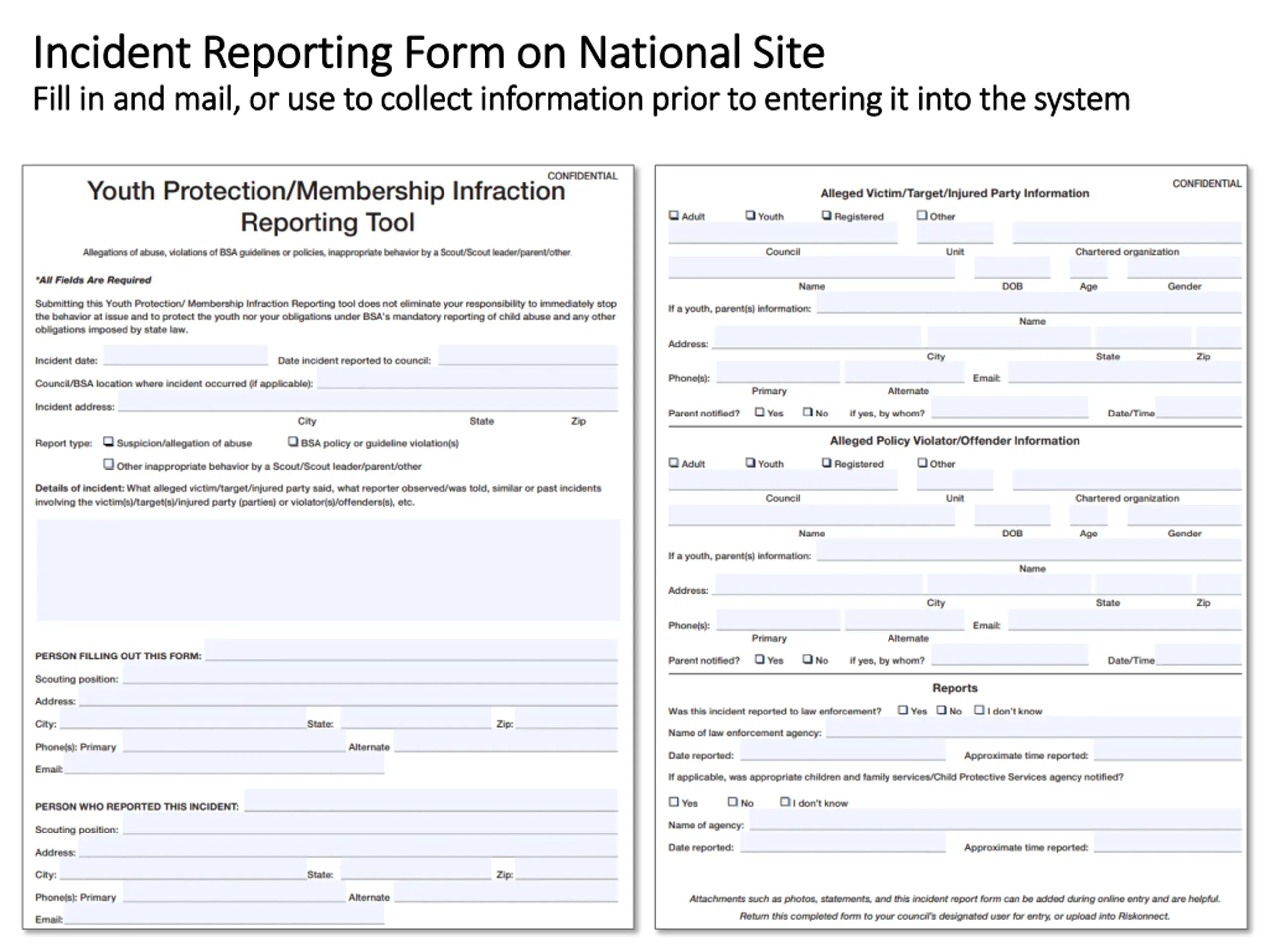 Incident Reporting Form on National Site Incident Reporting Form on National Site Fill in and mail, or use to collect information prior to entering it into the system Fill in and mail, or use to collect information prior to entering it into the system
