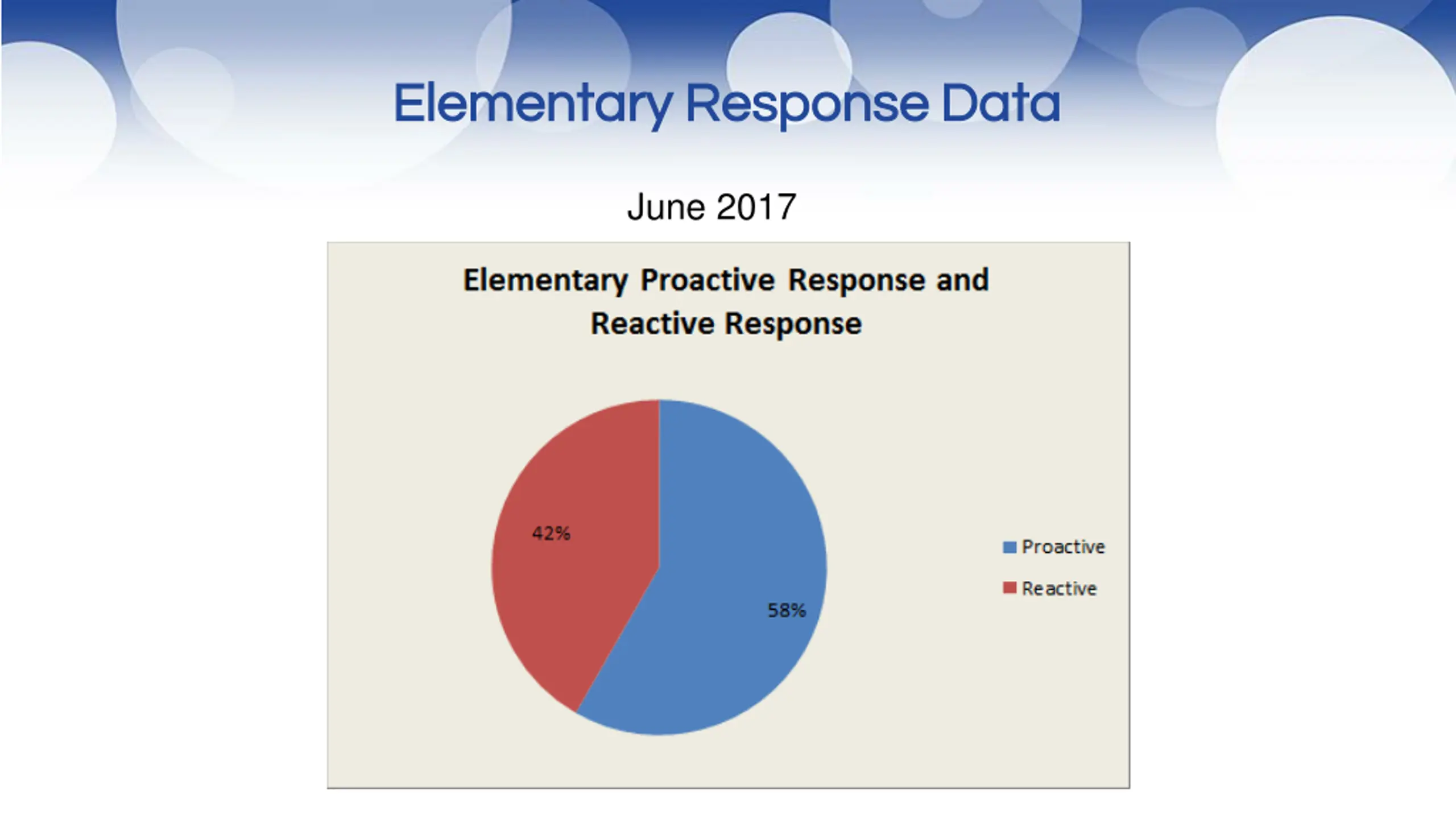Proactive VS Reactive Response Proactive VS Reactive Response Districtwide February 2017 59% Reactive 41% Proactive Districtwide June 2017 55% Reactive 45% Proactive 55% 45%
