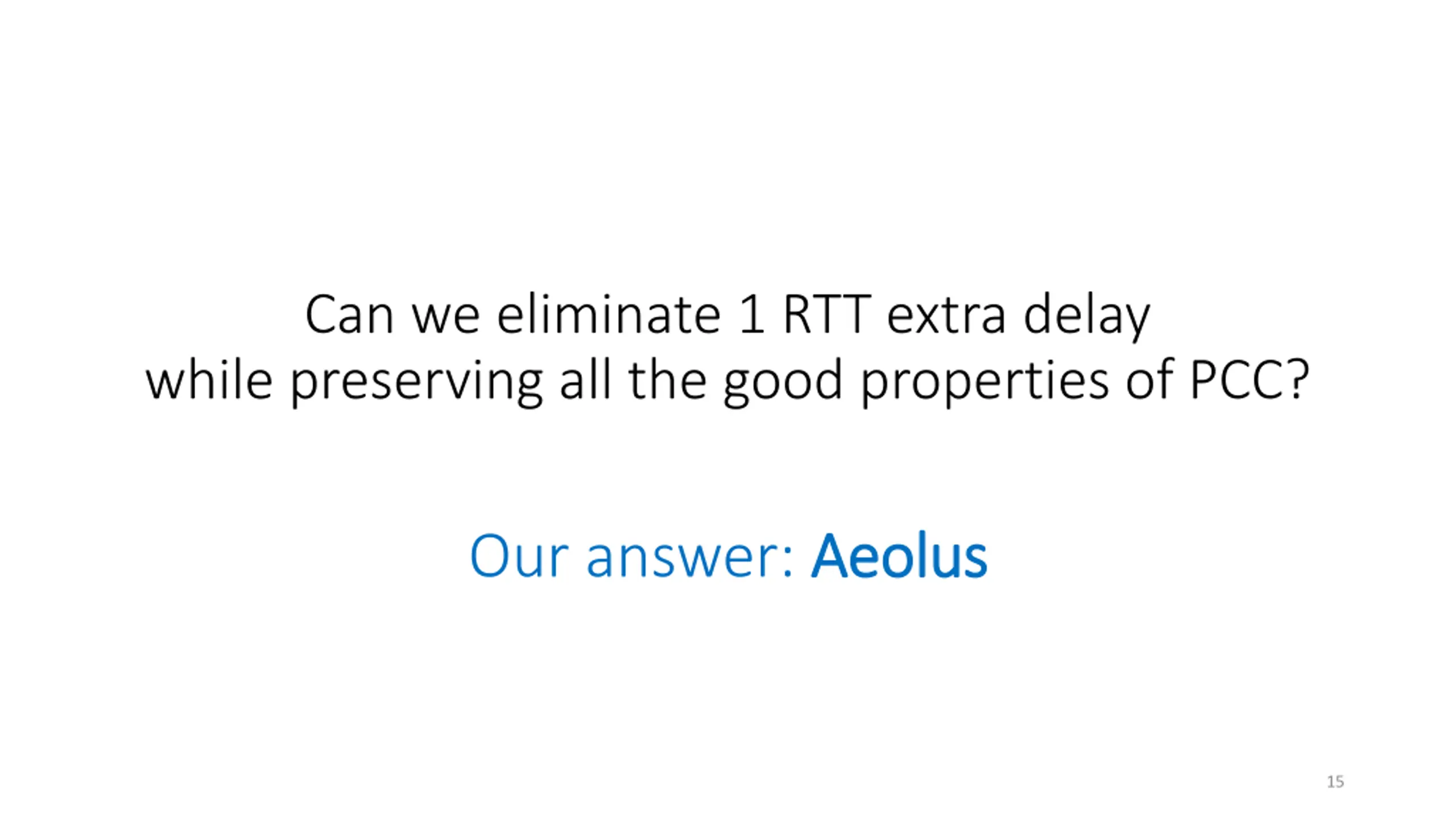 Can we eliminate 1 RTT extra delay while preserving all the good properties of PCC? Our answer: Aeolus Aeolus 15