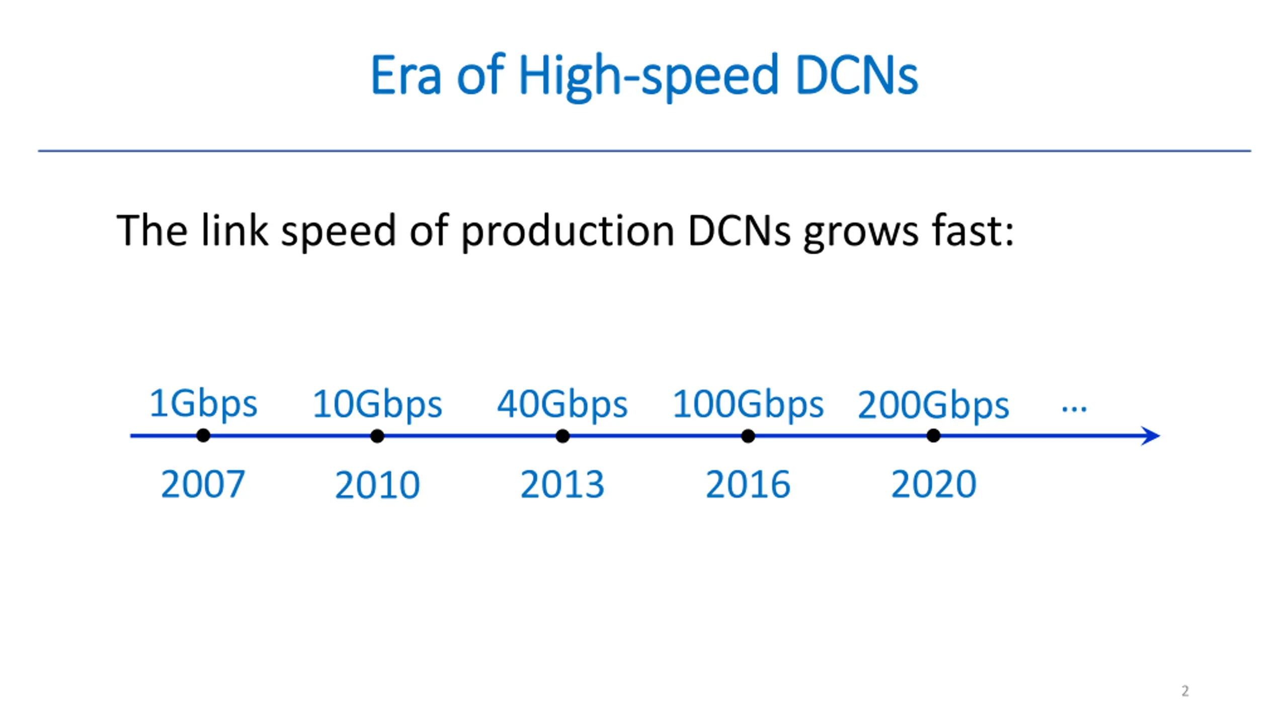 Era of High Era of High- -speed DCNs speed DCNs The link speed of production DCNs grows fast: 1Gbps 10Gbps 40Gbps 100Gbps 200Gbps 2007 2020 2013 2016 2010 2
