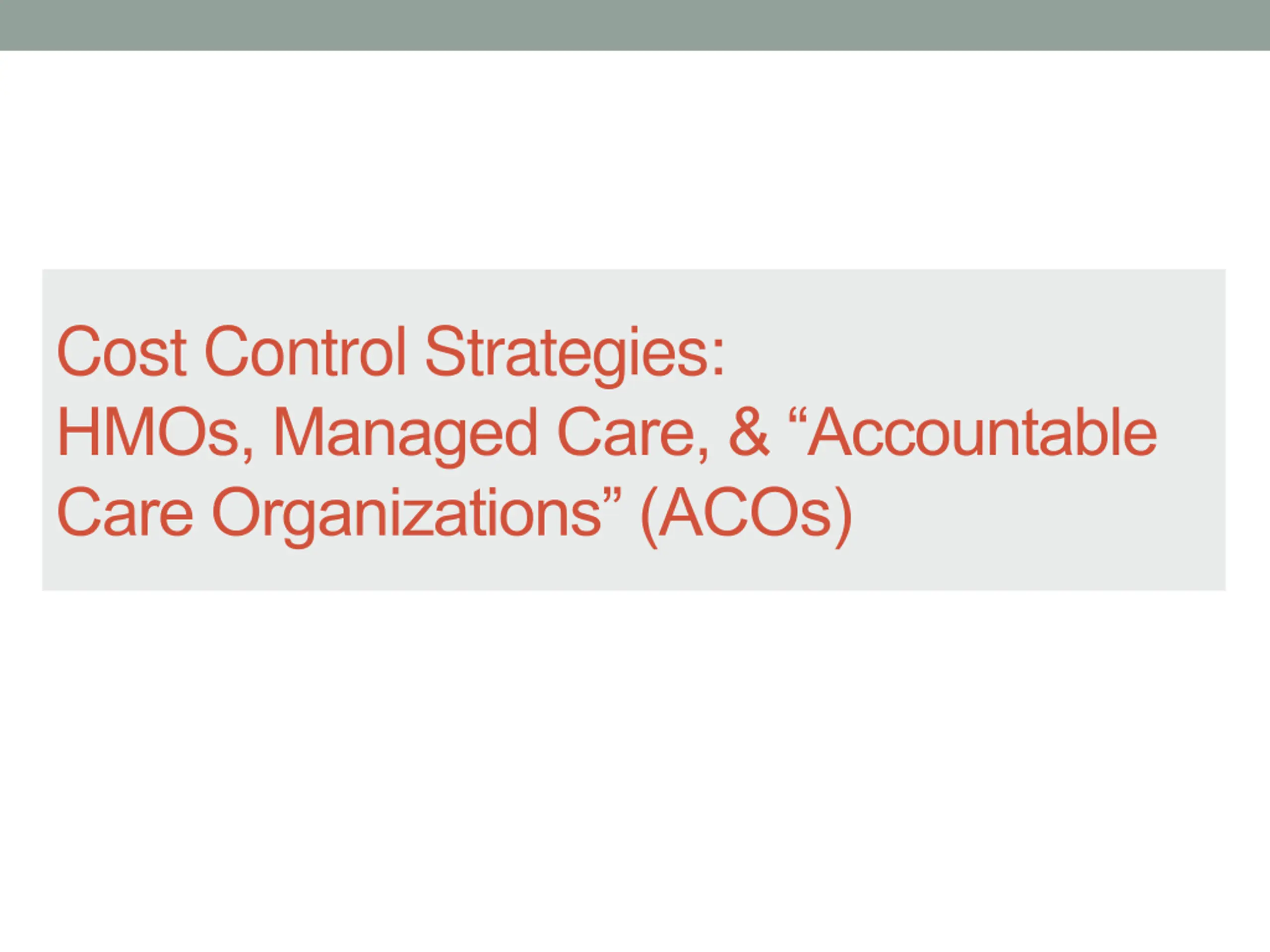 Cost Control Strategies: HMOs, Managed Care, & Accountable Care Organizations (ACOs)