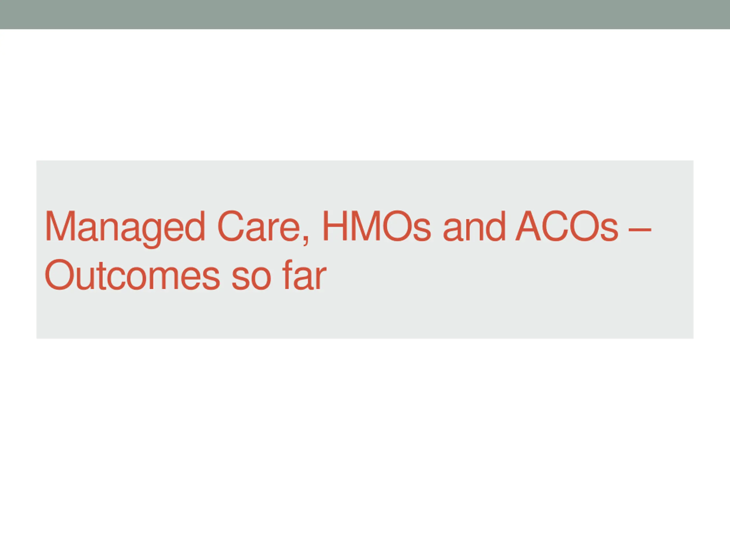 Managed Care, HMOs and ACOs Outcomes so far