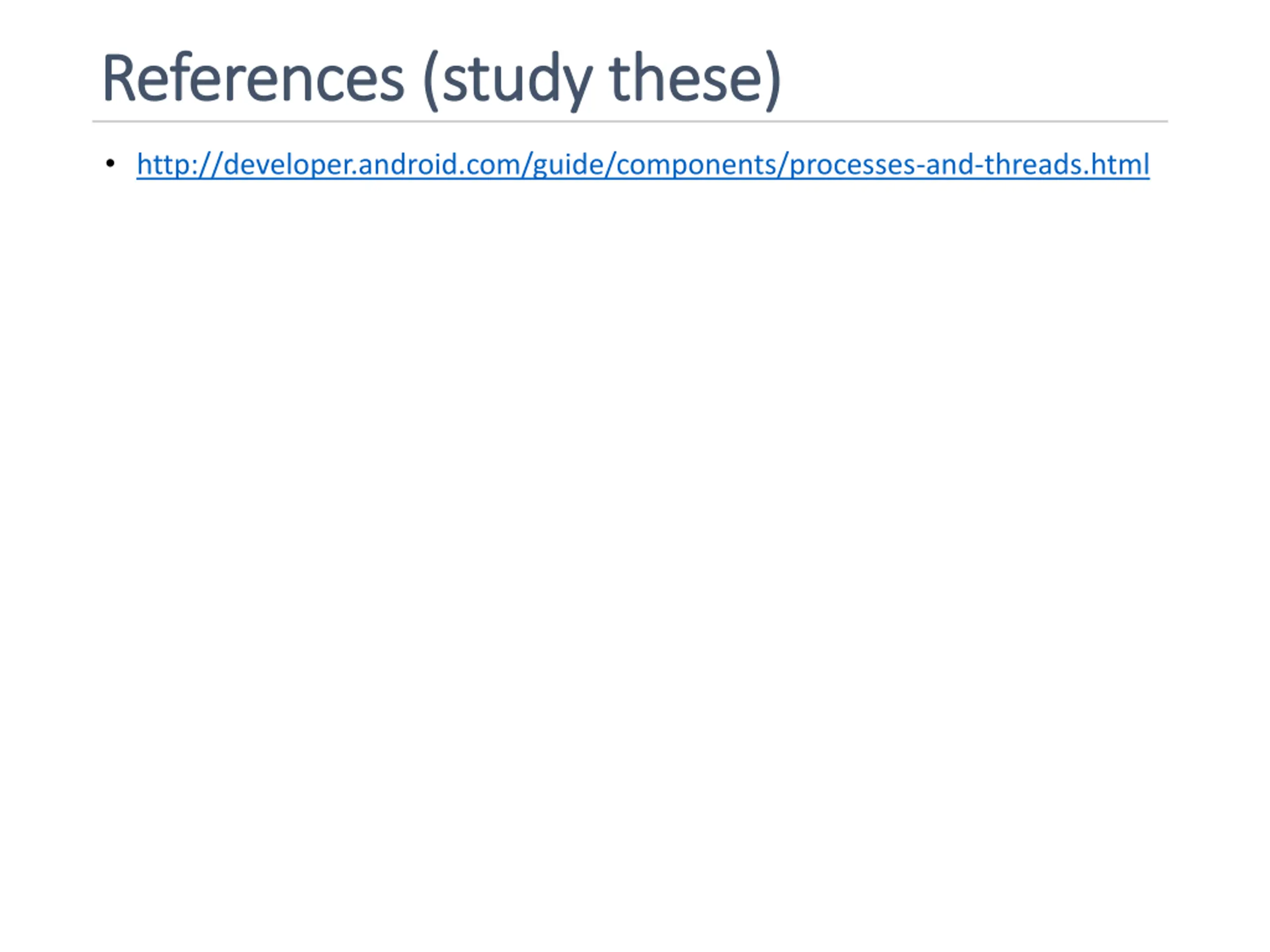References (study these) References (study these) http://developer.android.com/guide/components/processes-and-threads.html