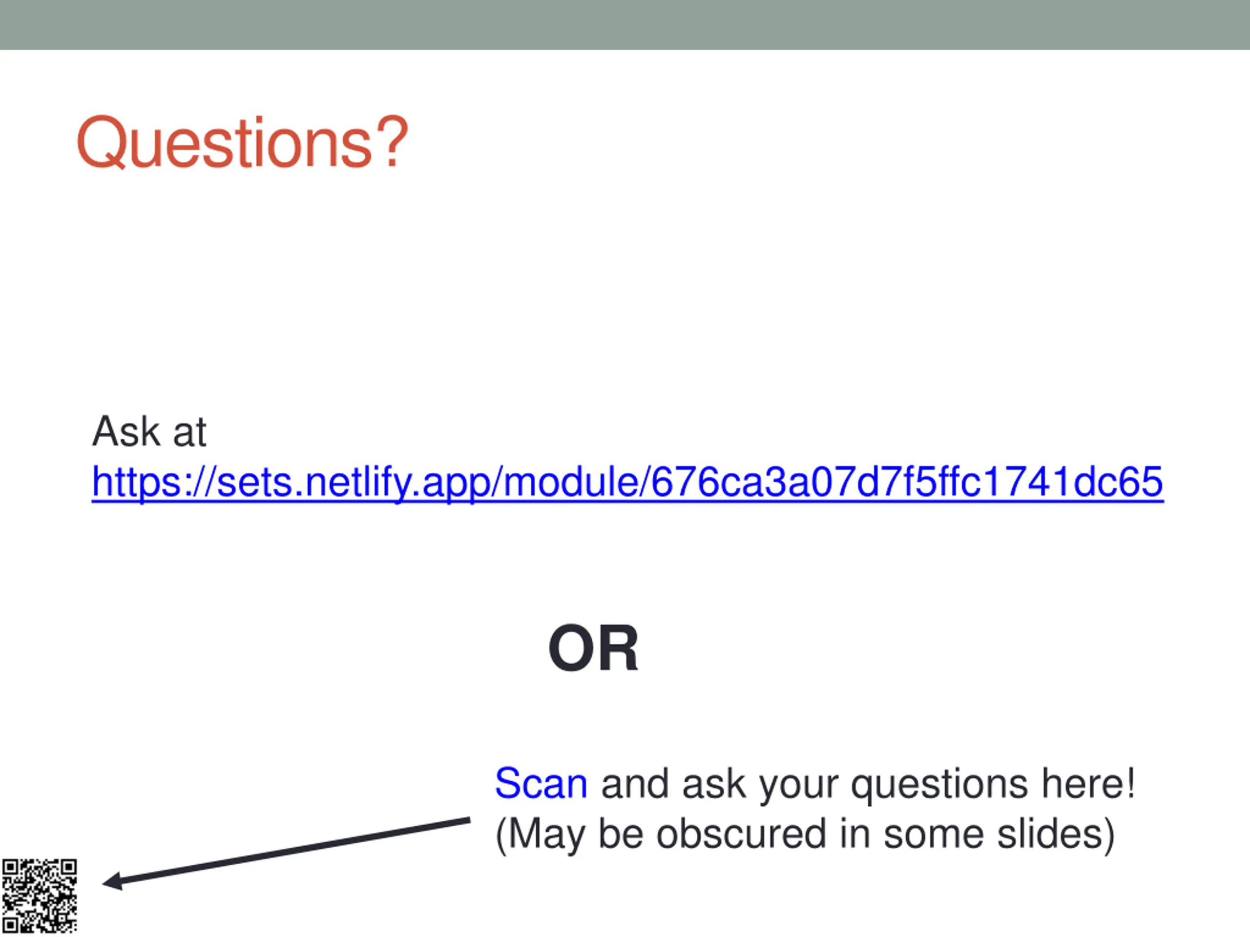 Questions? Ask at https://sets.netlify.app/module/676ca3a07d7f5ffc1741dc65 OR Scan and ask your questions here! (May be obscured in some slides)