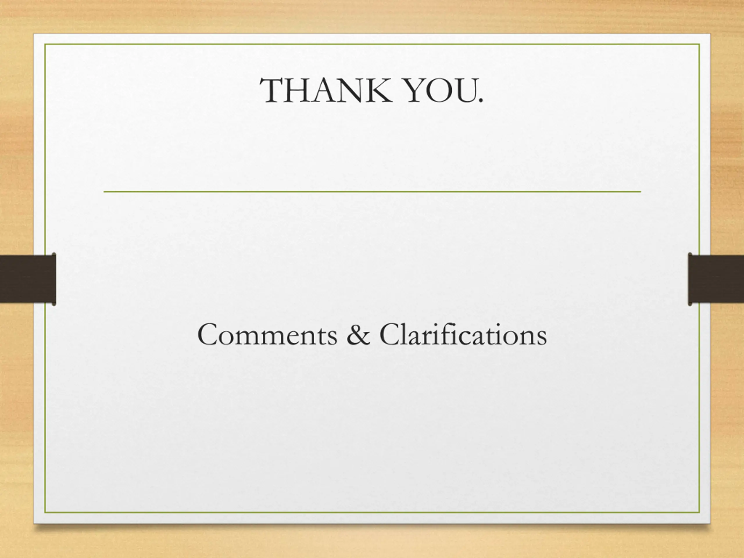 THANK YOU. Comments & Clarifications