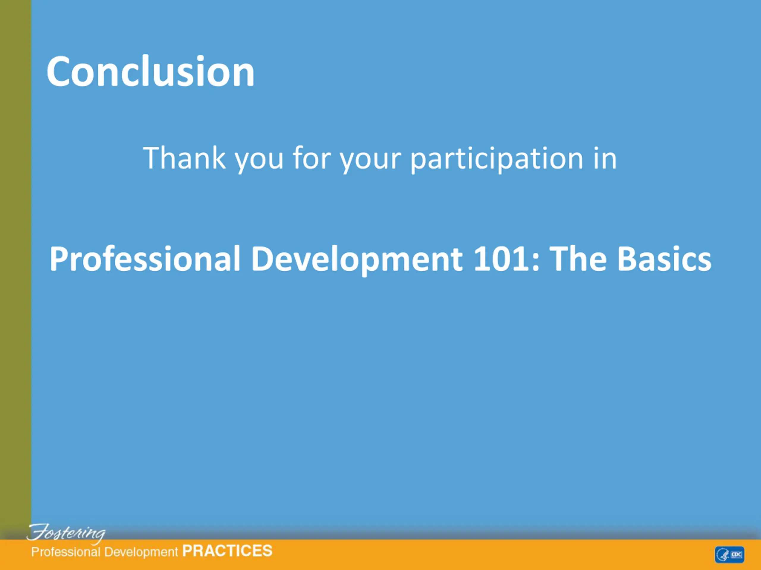 Conclusion Thank you for your participation in Professional Development 101: The Basics
