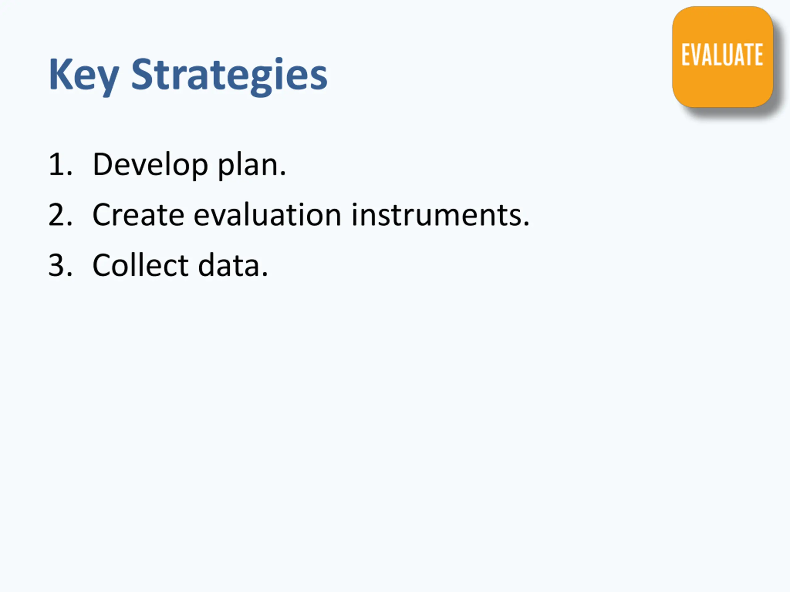 Key Strategies 1. Develop plan. 2. Create evaluation instruments. 3. Collect data.