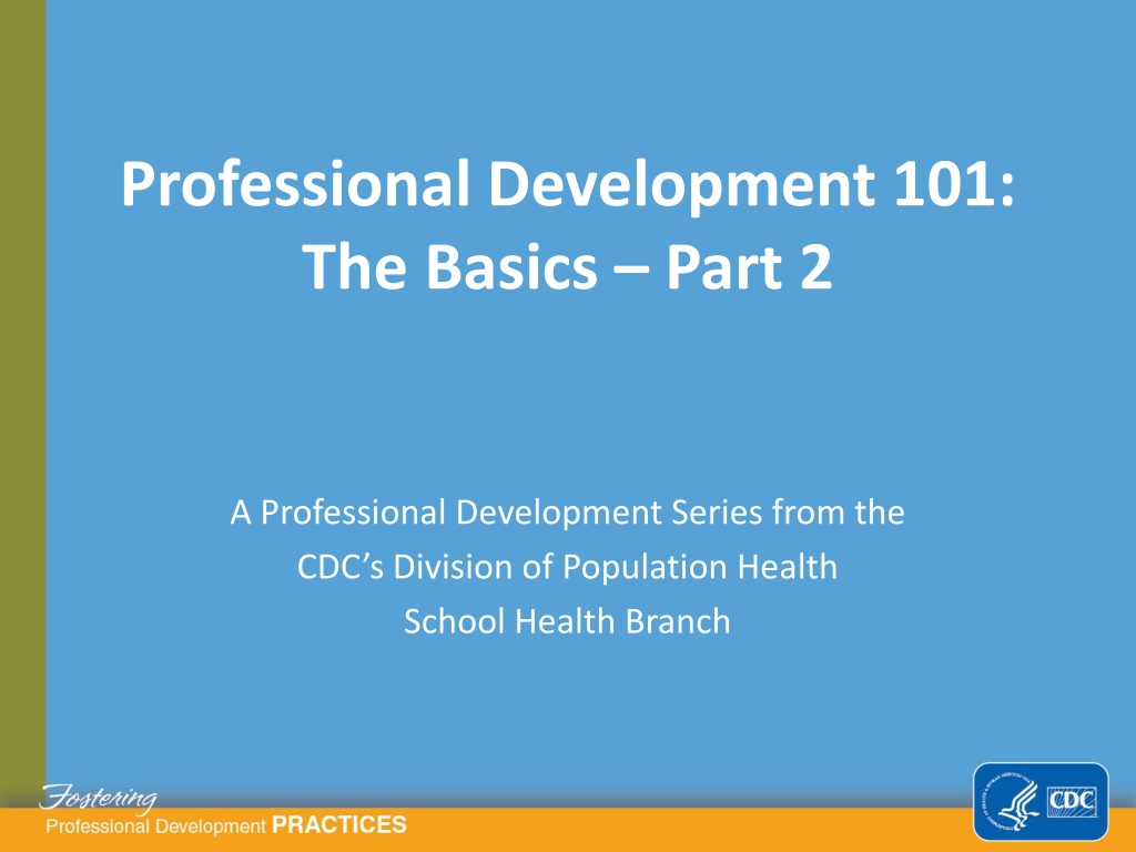 Professional Development 101: The Basics Part 2 A Professional Development Series from the CDC s Division of Population Health School Health Branch