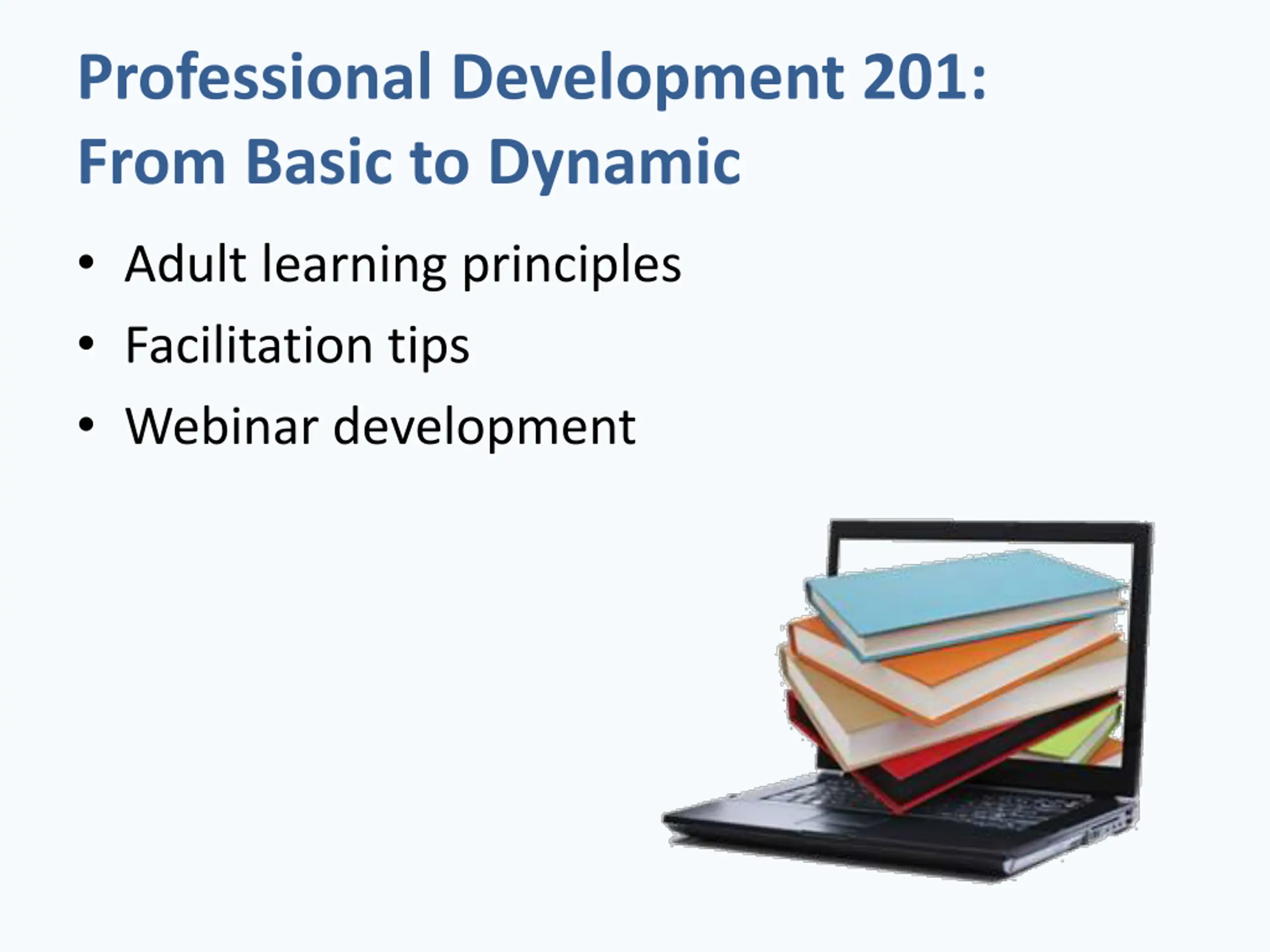 Professional Development 201: From Basic to Dynamic Adult learning principles Facilitation tips Webinar development