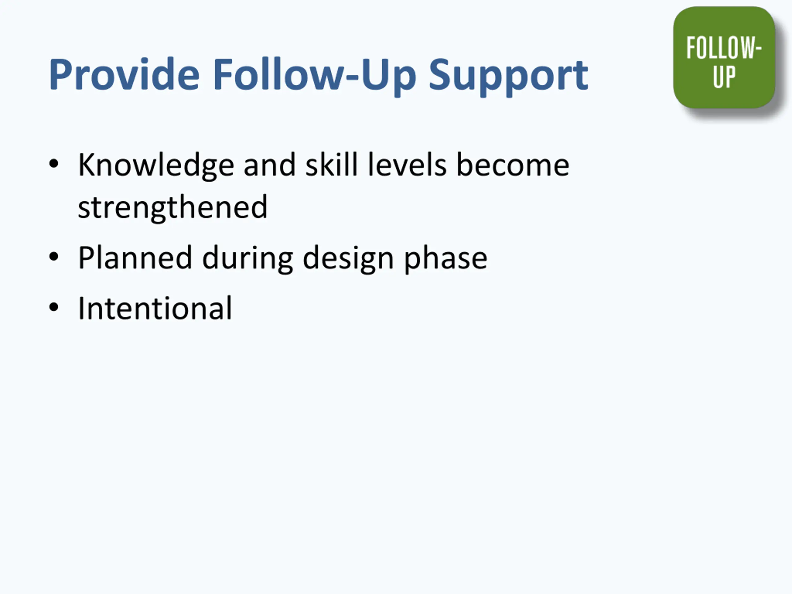 Provide Follow-Up Support Knowledge and skill levels become strengthened Planned during design phase Intentional