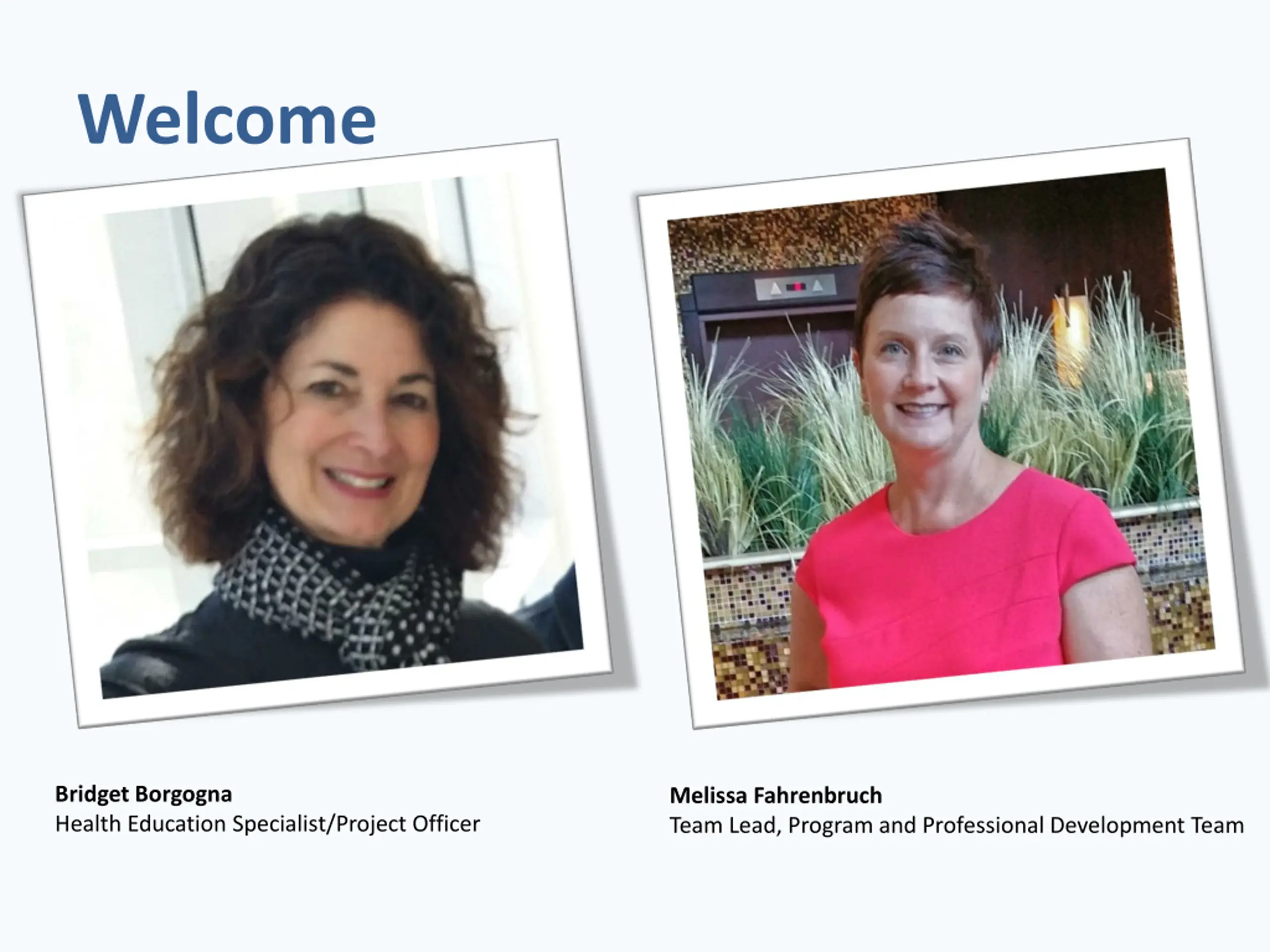 Welcome Bridget Borgogna Health Education Specialist/Project Officer Melissa Fahrenbruch Team Lead, Program and Professional Development Team