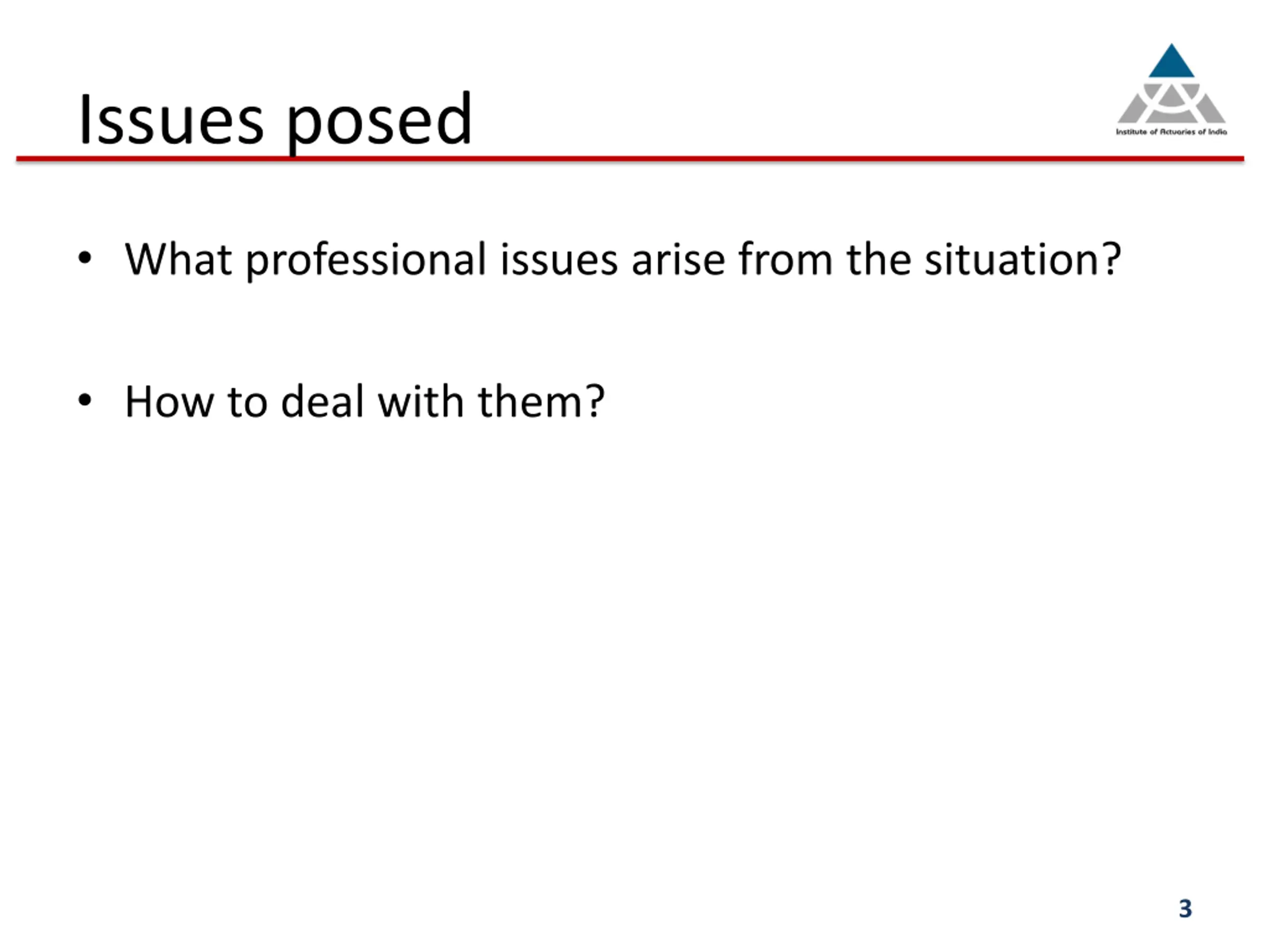 Issues posed What professional issues arise from the situation? How to deal with them? 3