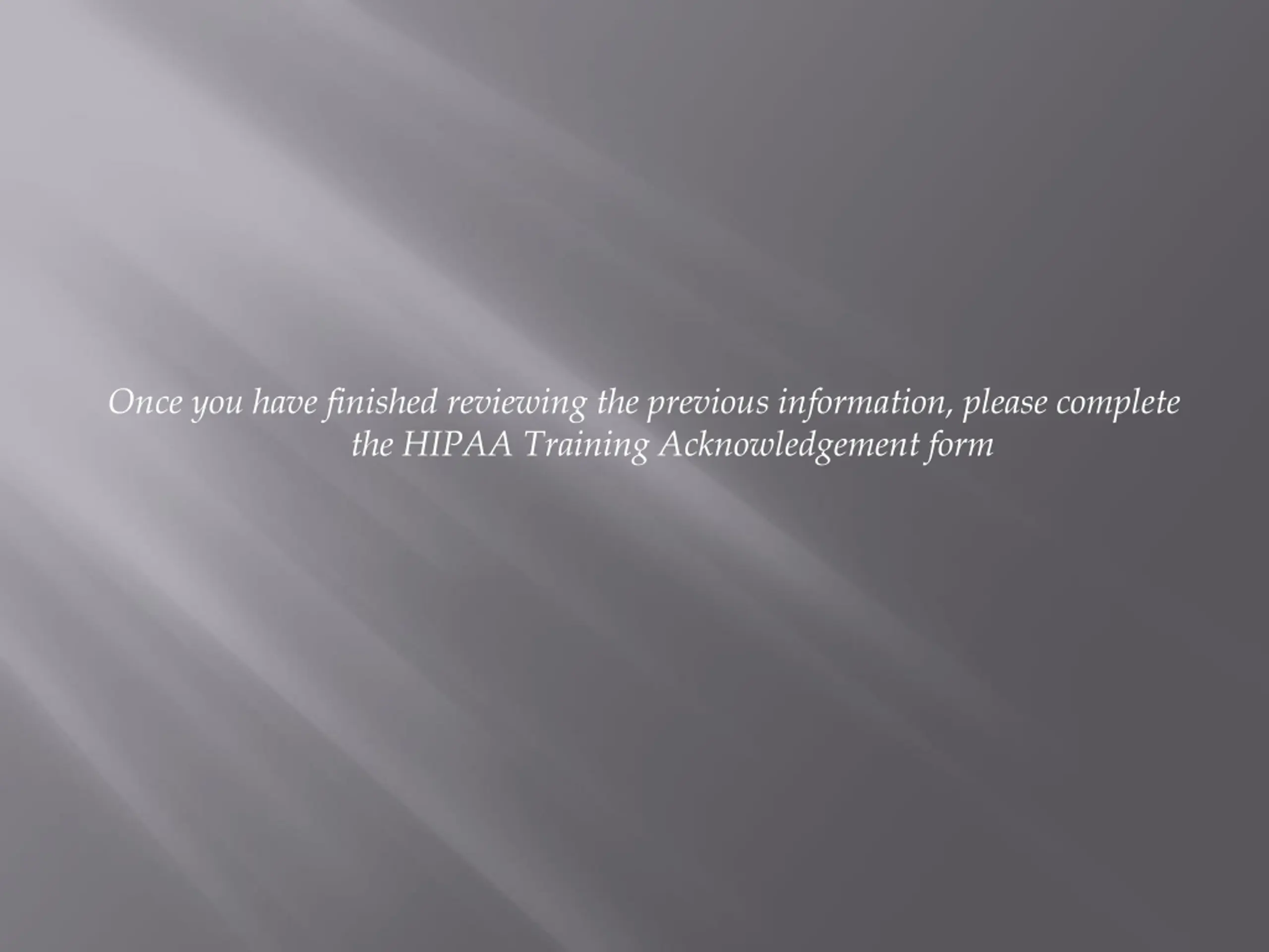 Once you have finished reviewing the previous information, please complete the HIPAA Training Acknowledgement form