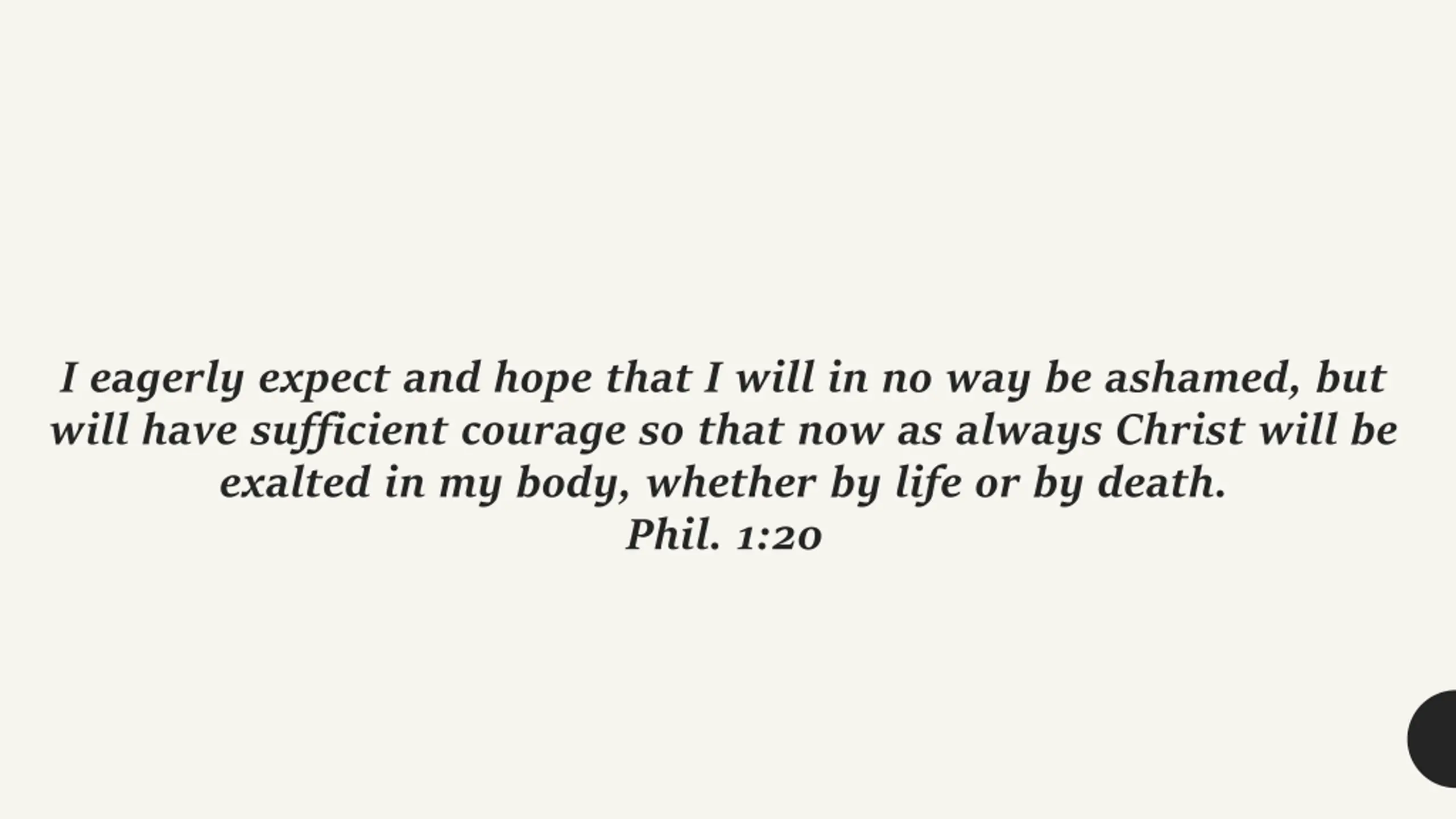 I eagerly expect and hope that I will in no way be ashamed, but will have sufficient courage so that now as always Christ will be exalted in my body, whether by life or by death. Phil. 1:20