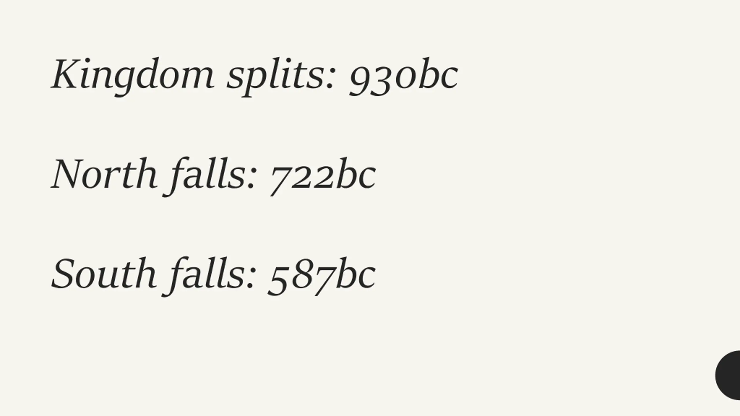 Kingdom splits: 930bc North falls: 722bc South falls: 587bc
