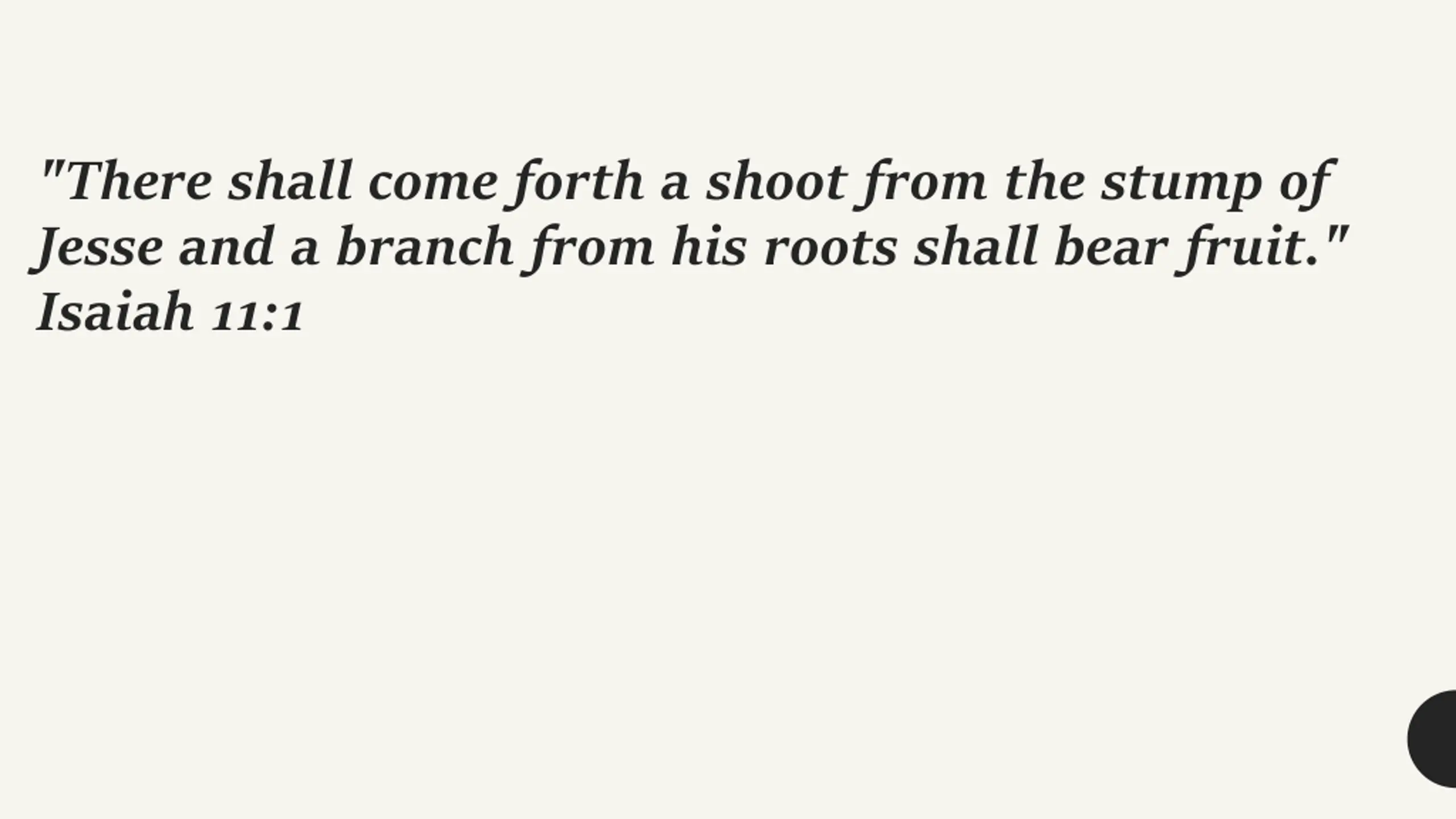 "There shall come forth a shoot from the stump of Jesse and a branch from his roots shall bear fruit." Isaiah 11:1