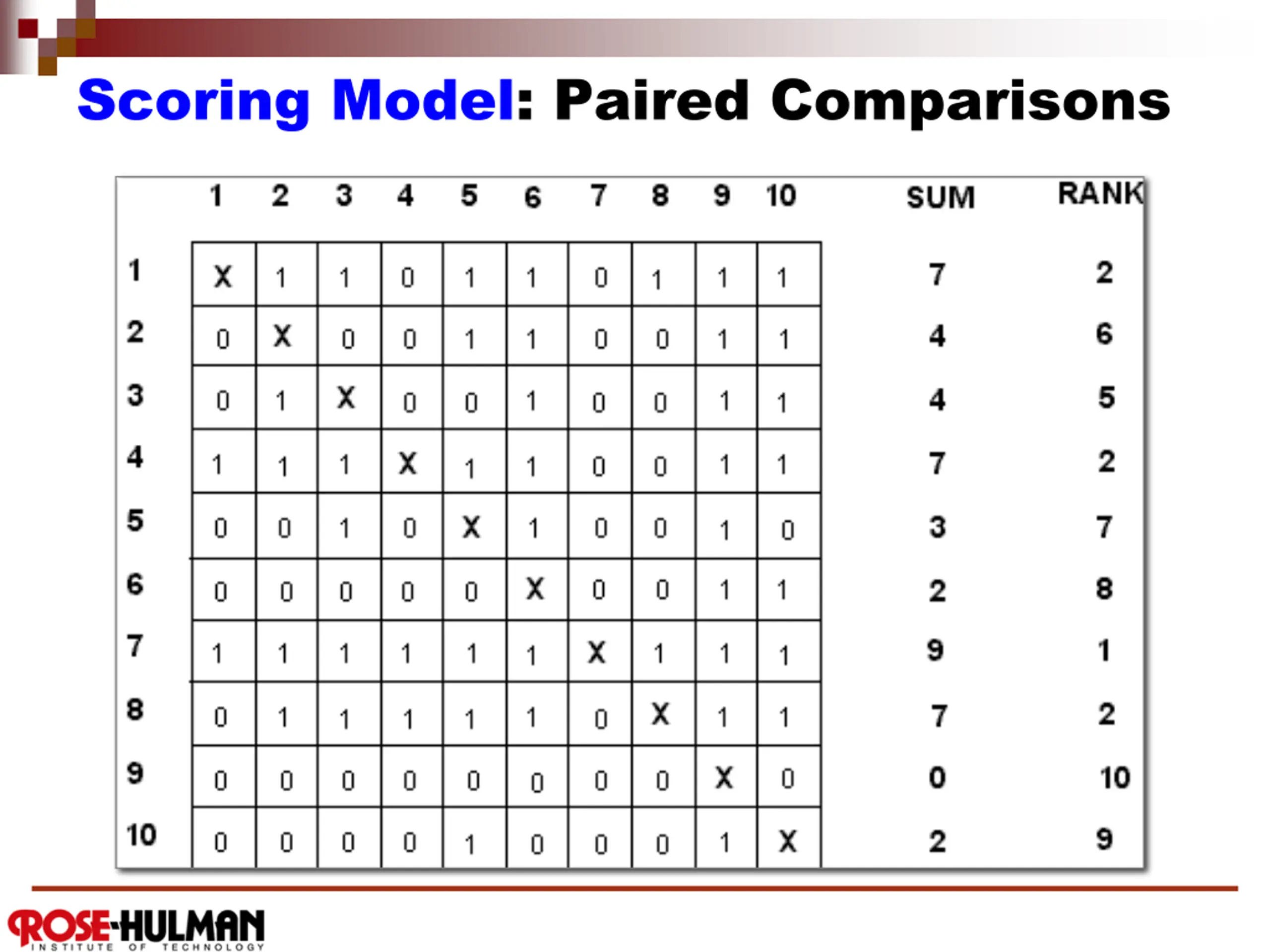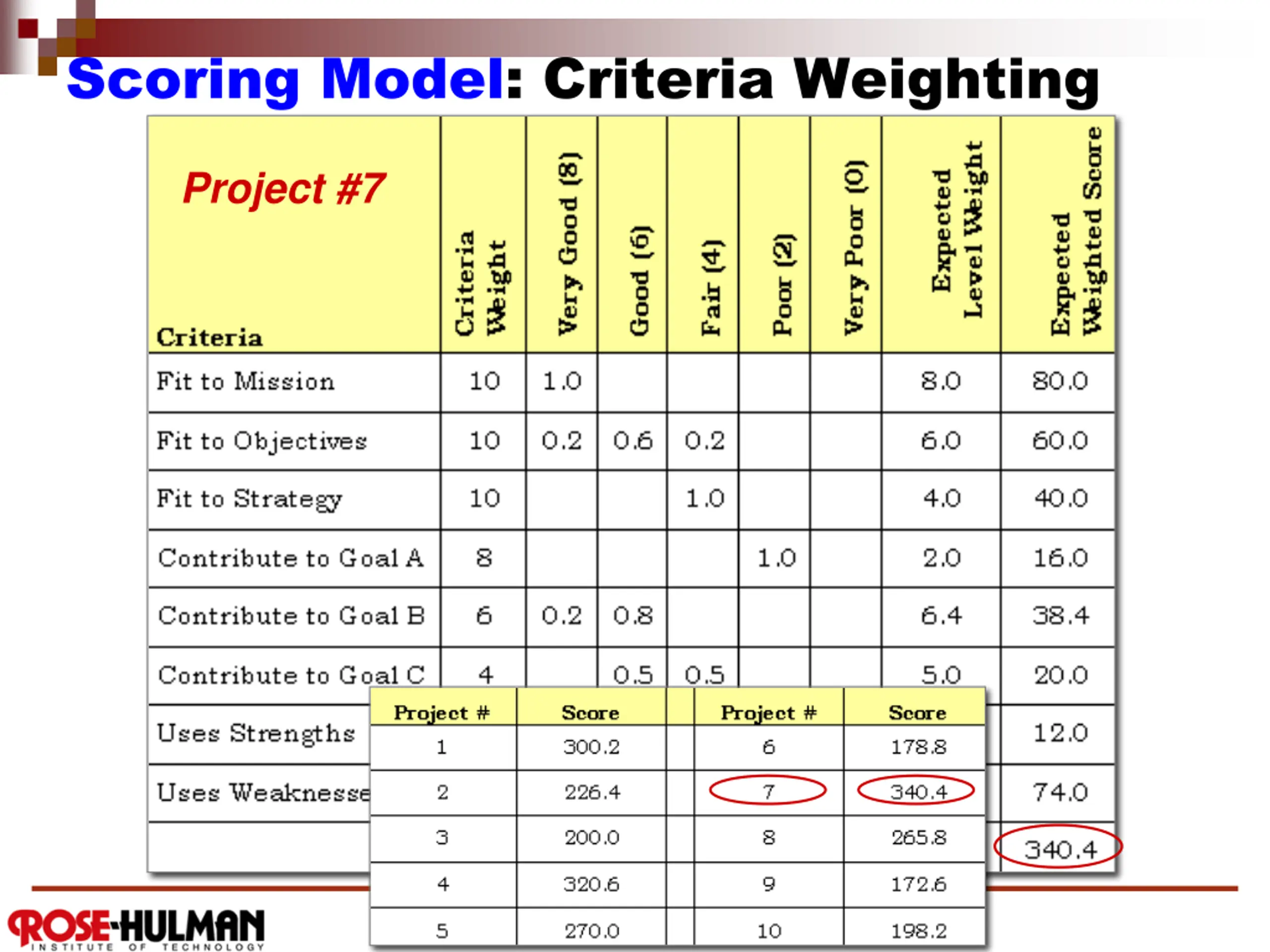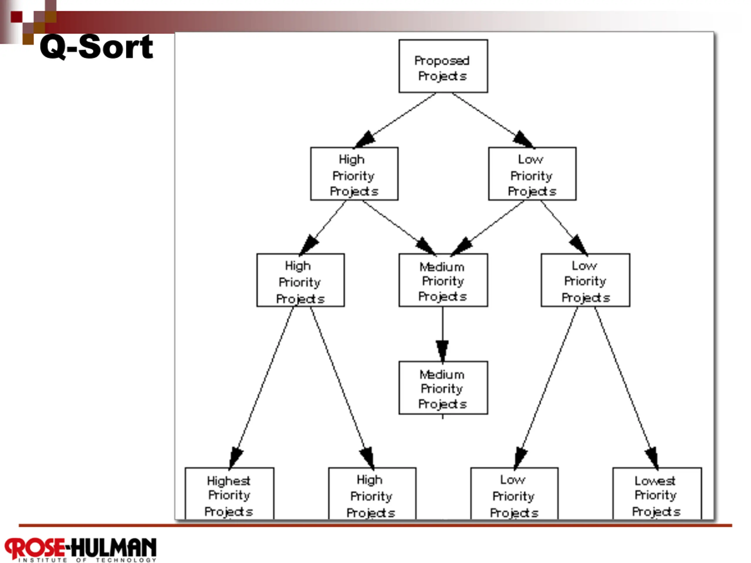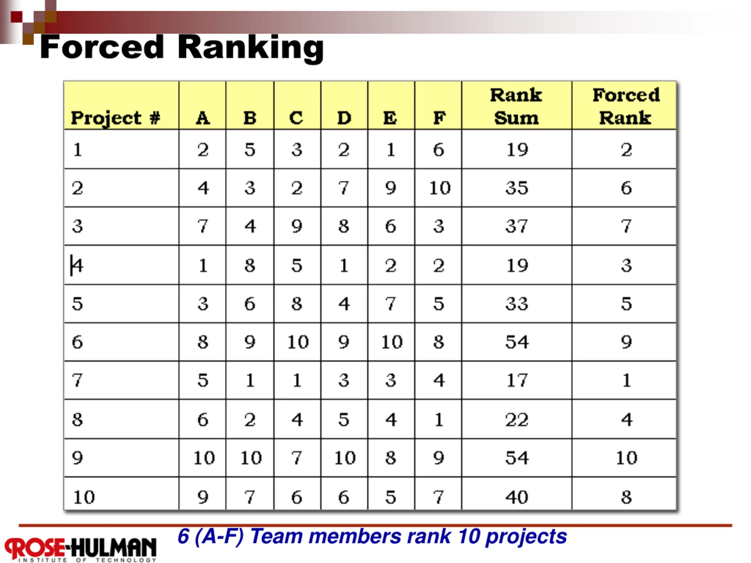Forced Ranking 6 (A-F) Team members rank 10 projects