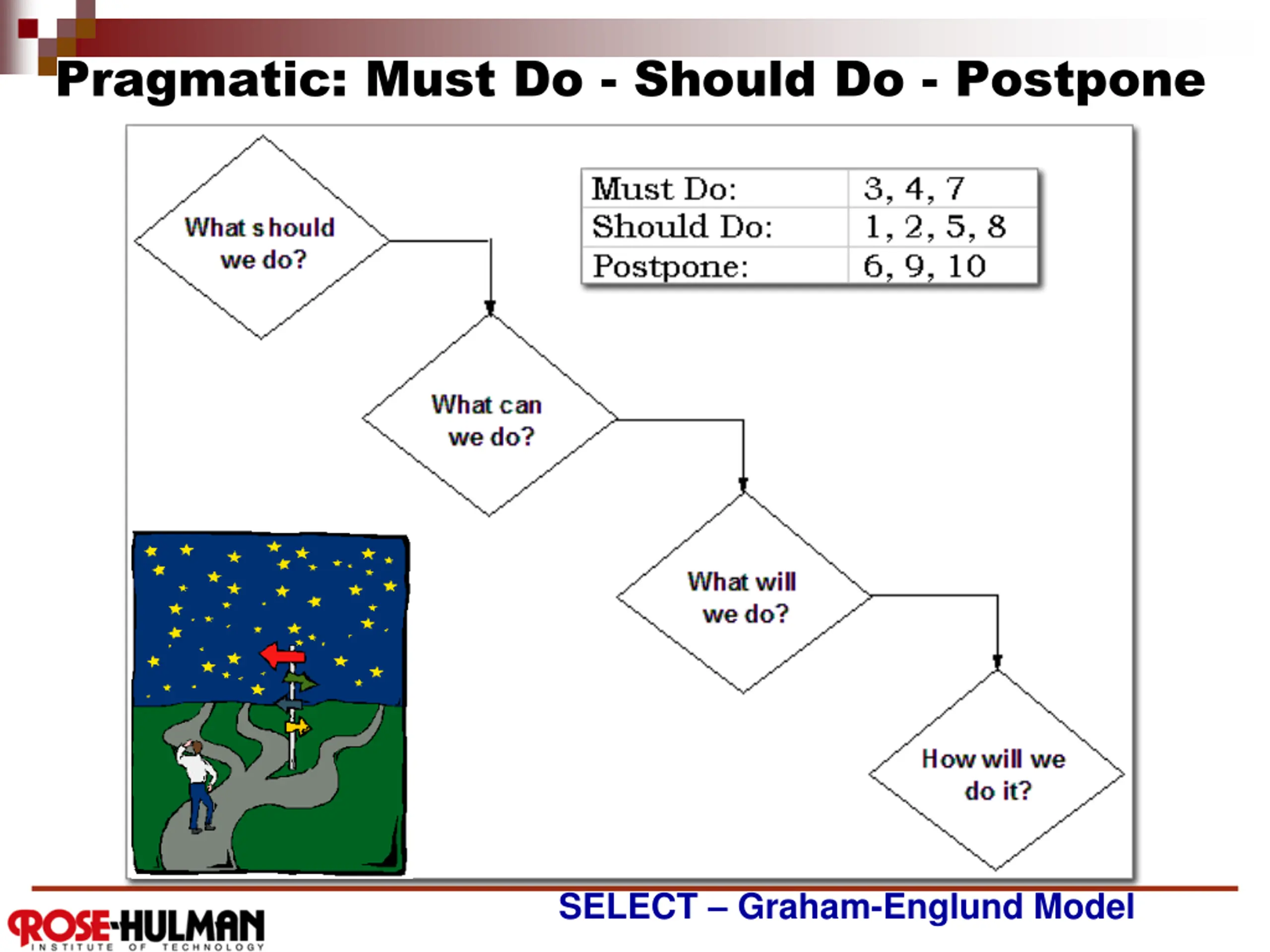 Pragmatic: Must Do - Should Do - Postpone SELECT Graham-Englund Model