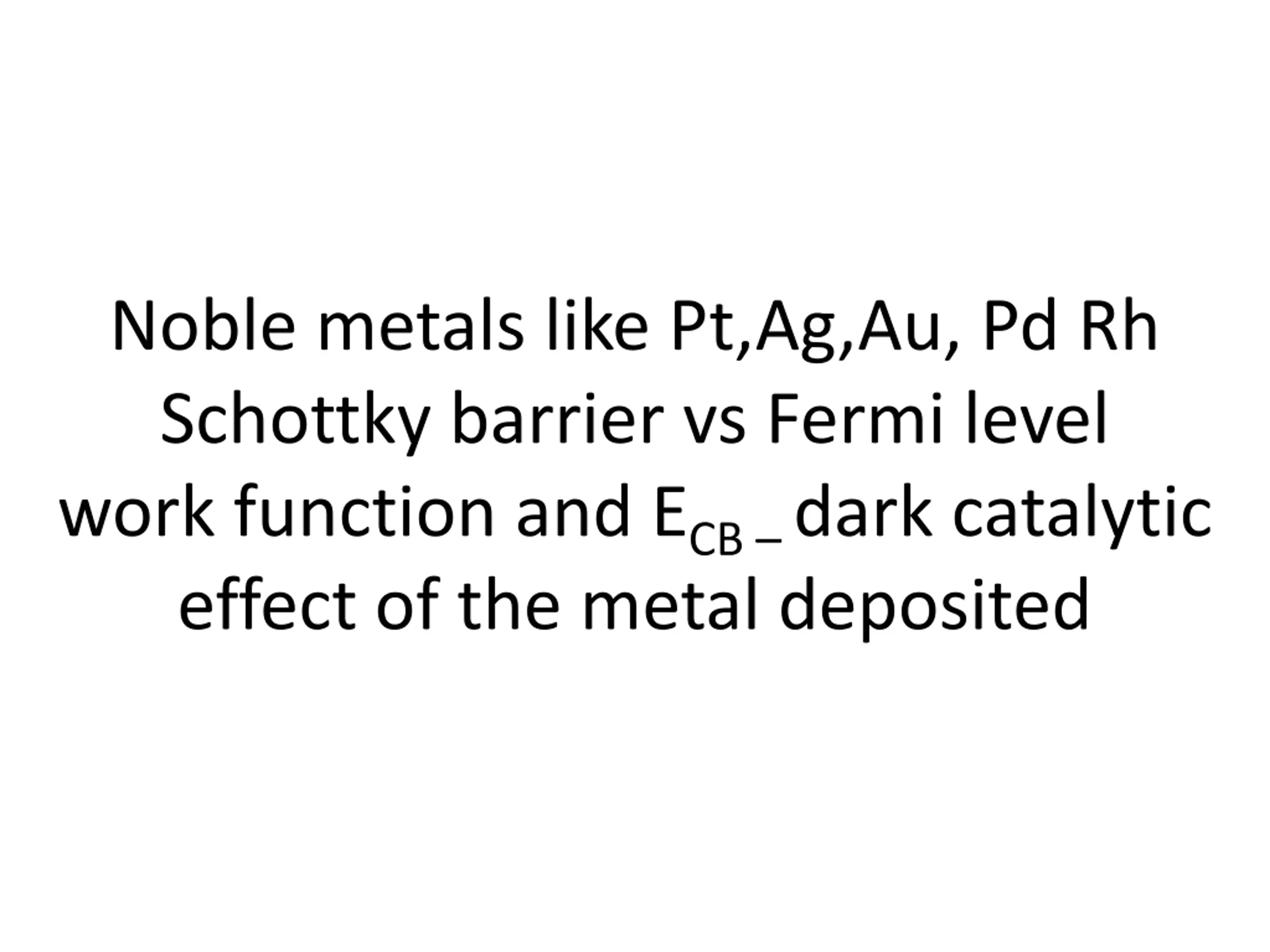 Noble metals like Pt,Ag,Au, Pd Rh Schottky barrier vs Fermi level work function and ECB dark catalytic effect of the metal deposited