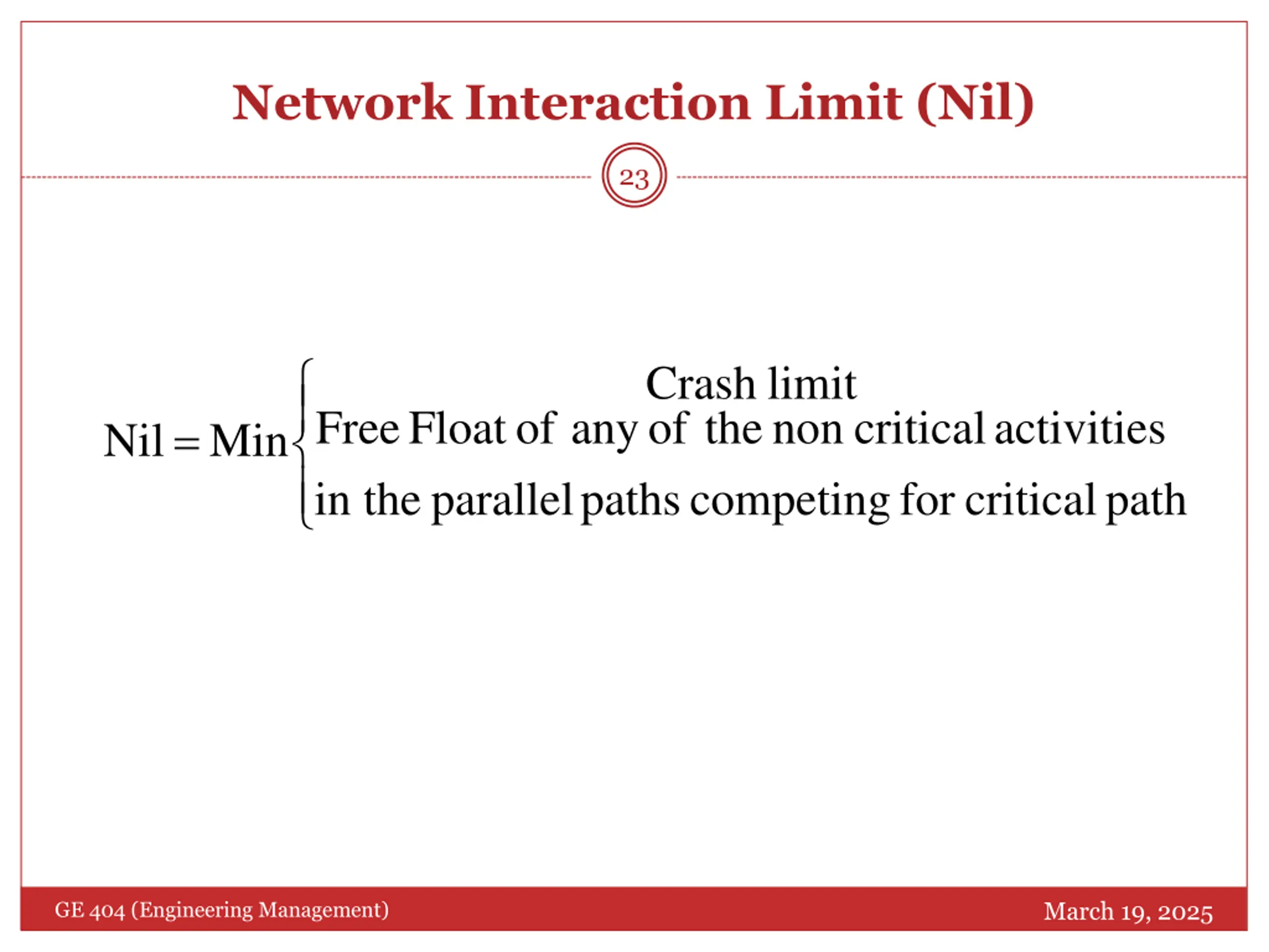 Network Interaction Limit (Nil) 23 Crash limit Free Float of any of the non critical activities = Nil Min competing paths parallel in the critical for path March 19, 2025 GE 404 (Engineering Management)