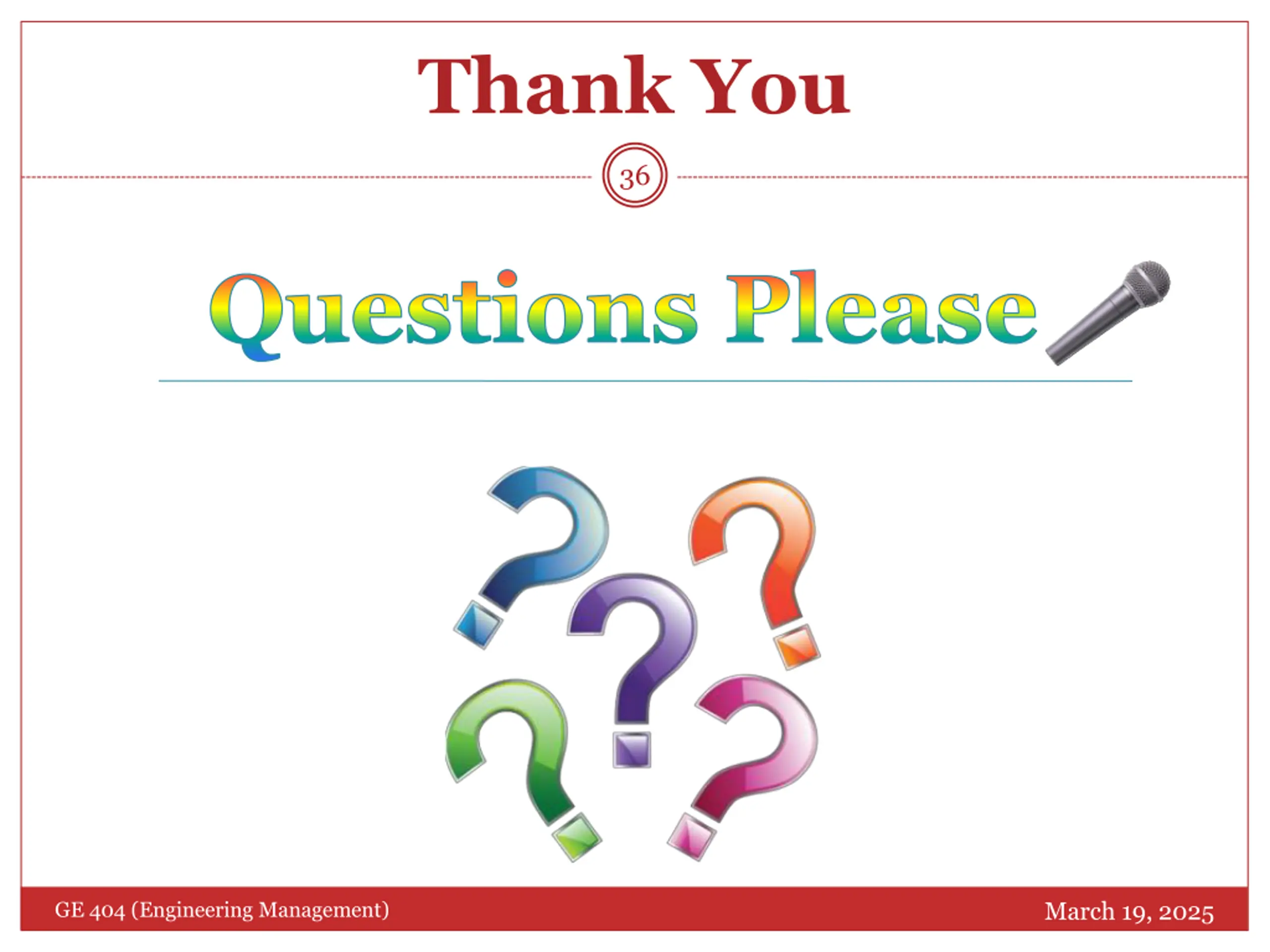 Thank You 36 Questions Please March 19, 2025 GE 404 (Engineering Management)
